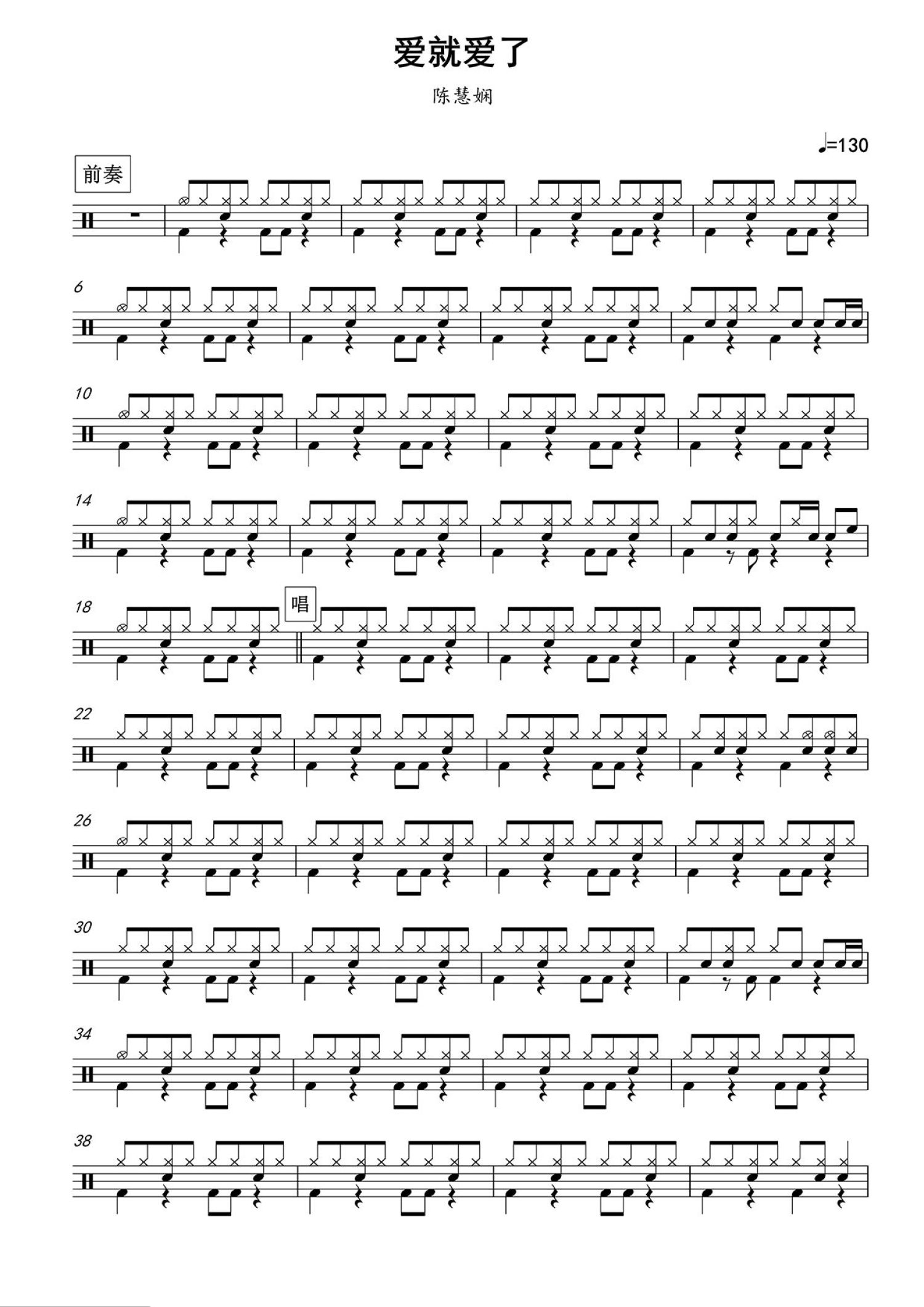 爱就爱了鼓谱 - 陈琳 - 架子鼓谱