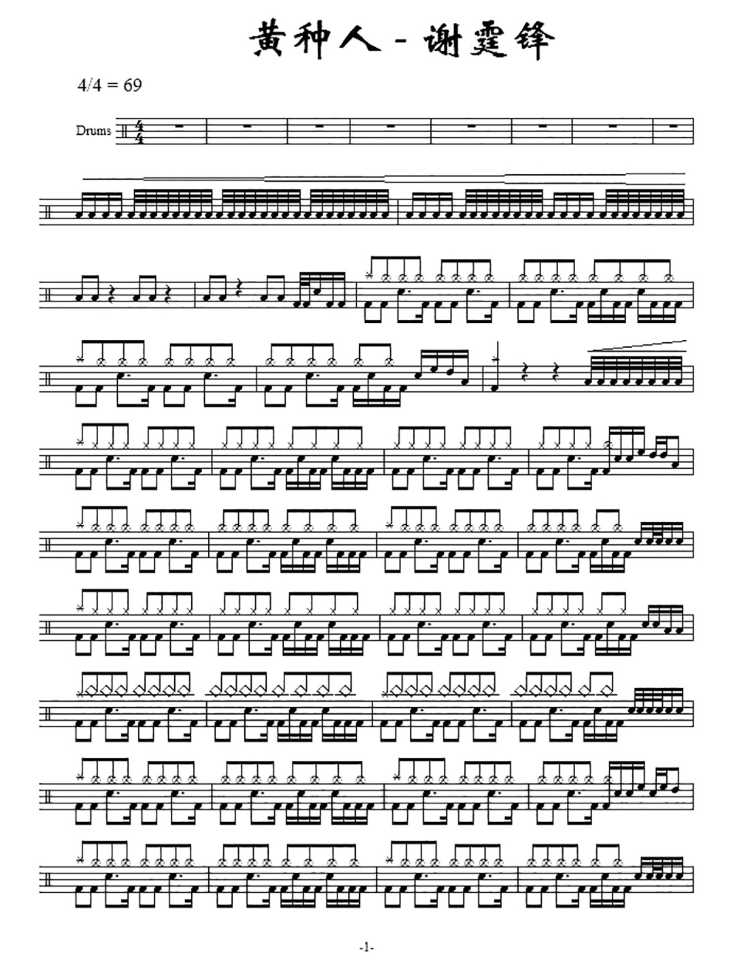 • 黄种人鼓谱 - 谢霆锋 - 架子鼓谱第1张