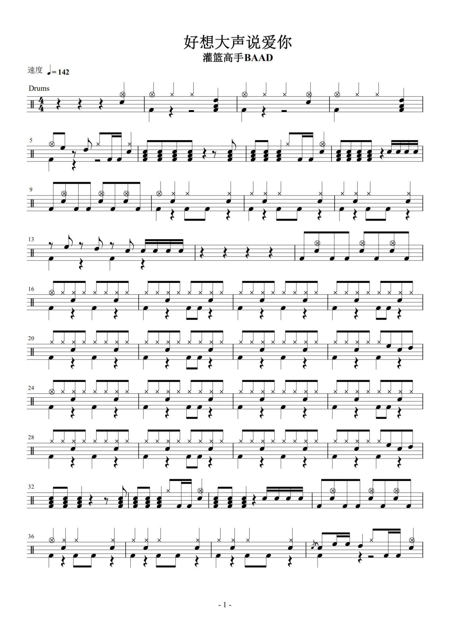 • 好想大声说爱你鼓谱 - BAAD - 架子鼓谱第1张