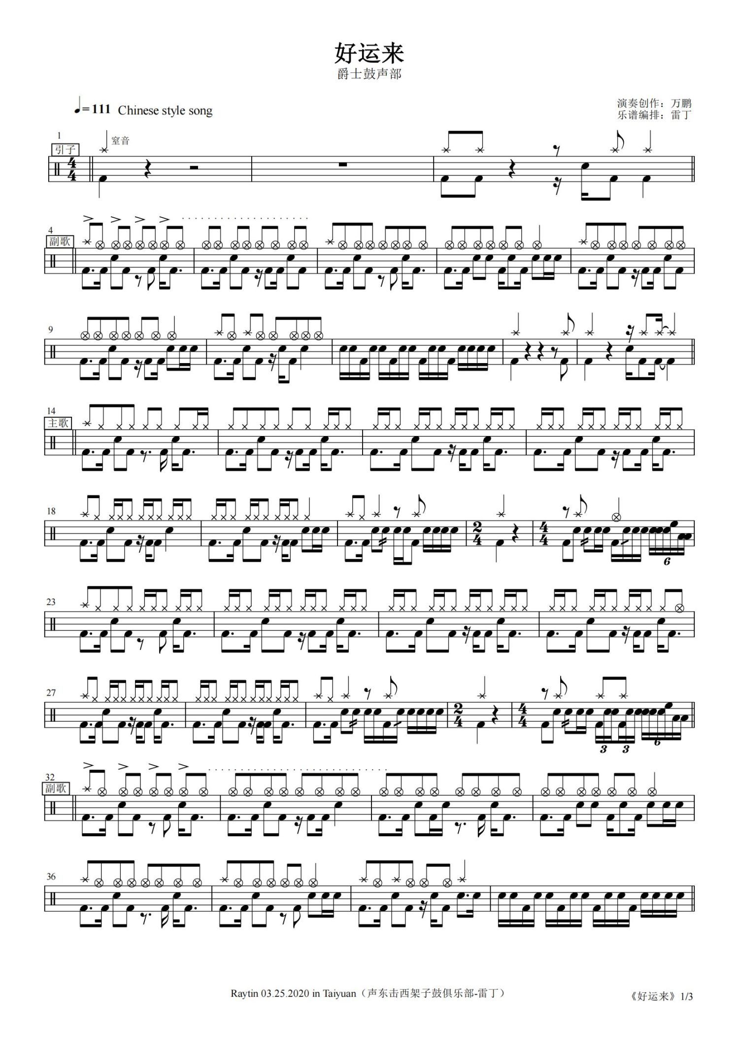 • 好运来鼓谱 - 宋祖英 - 架子鼓谱第1张