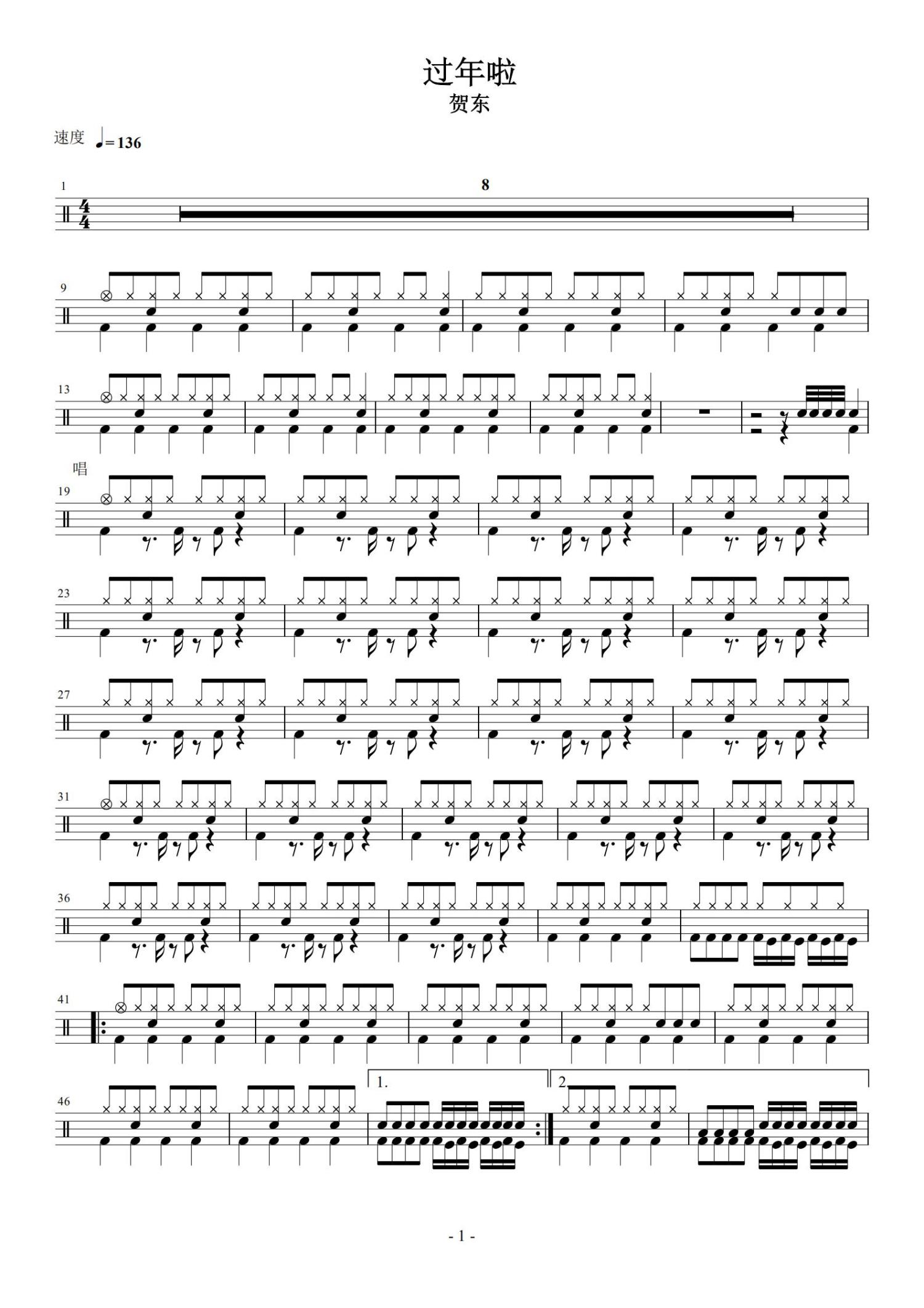 • 过年啦鼓谱 - 贺东 - 架子鼓谱第1张