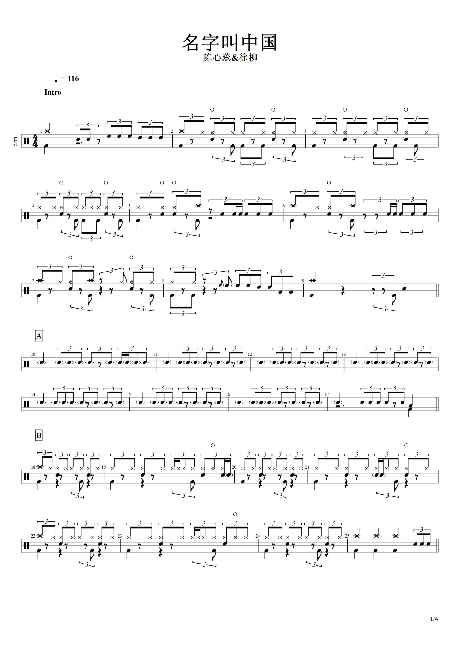 • 名字叫中国鼓谱 - 陈心蕊/徐柳 - 架子鼓谱第1张
