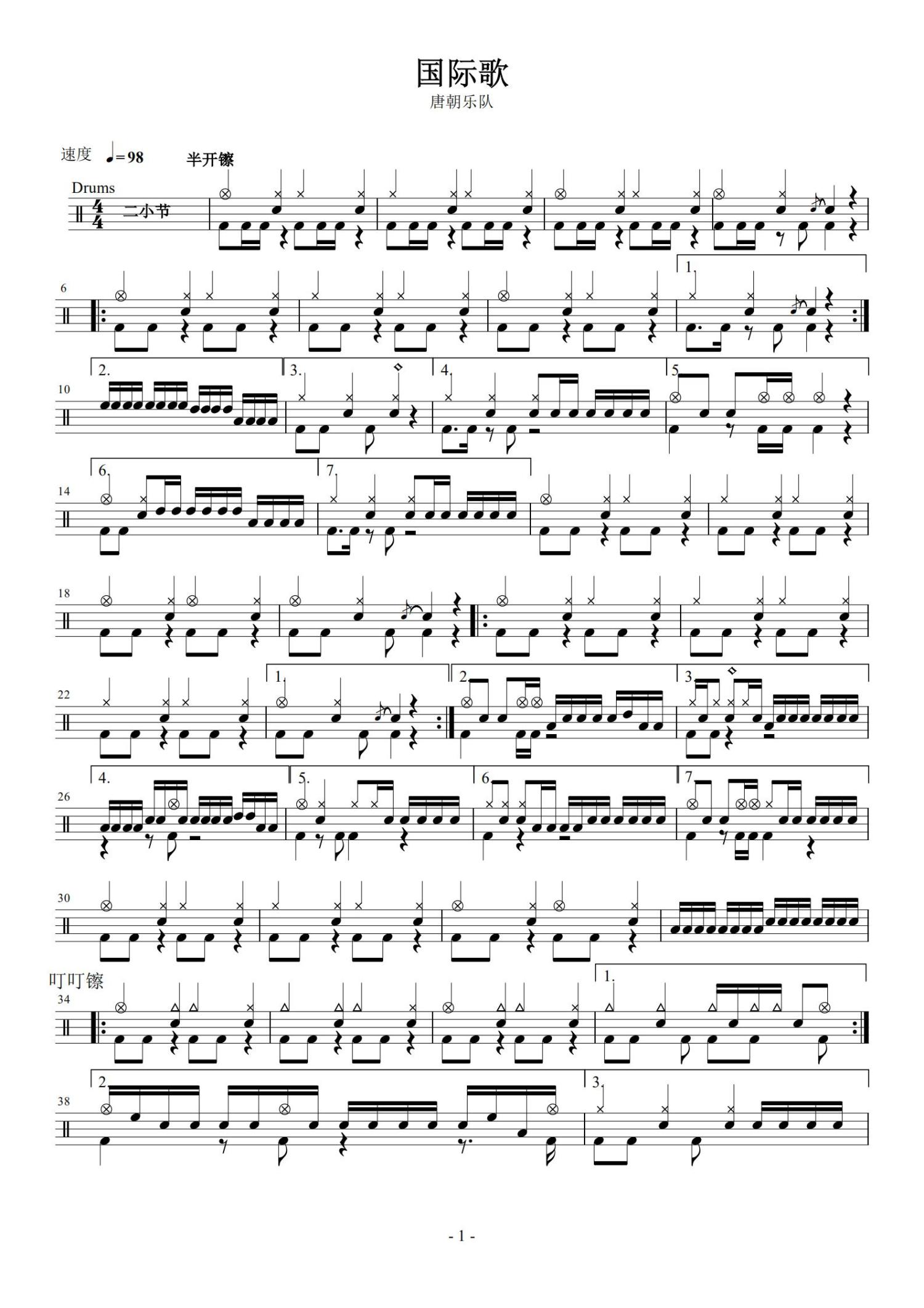 • 国际歌鼓谱 - 唐朝乐队 - 架子鼓谱第1张