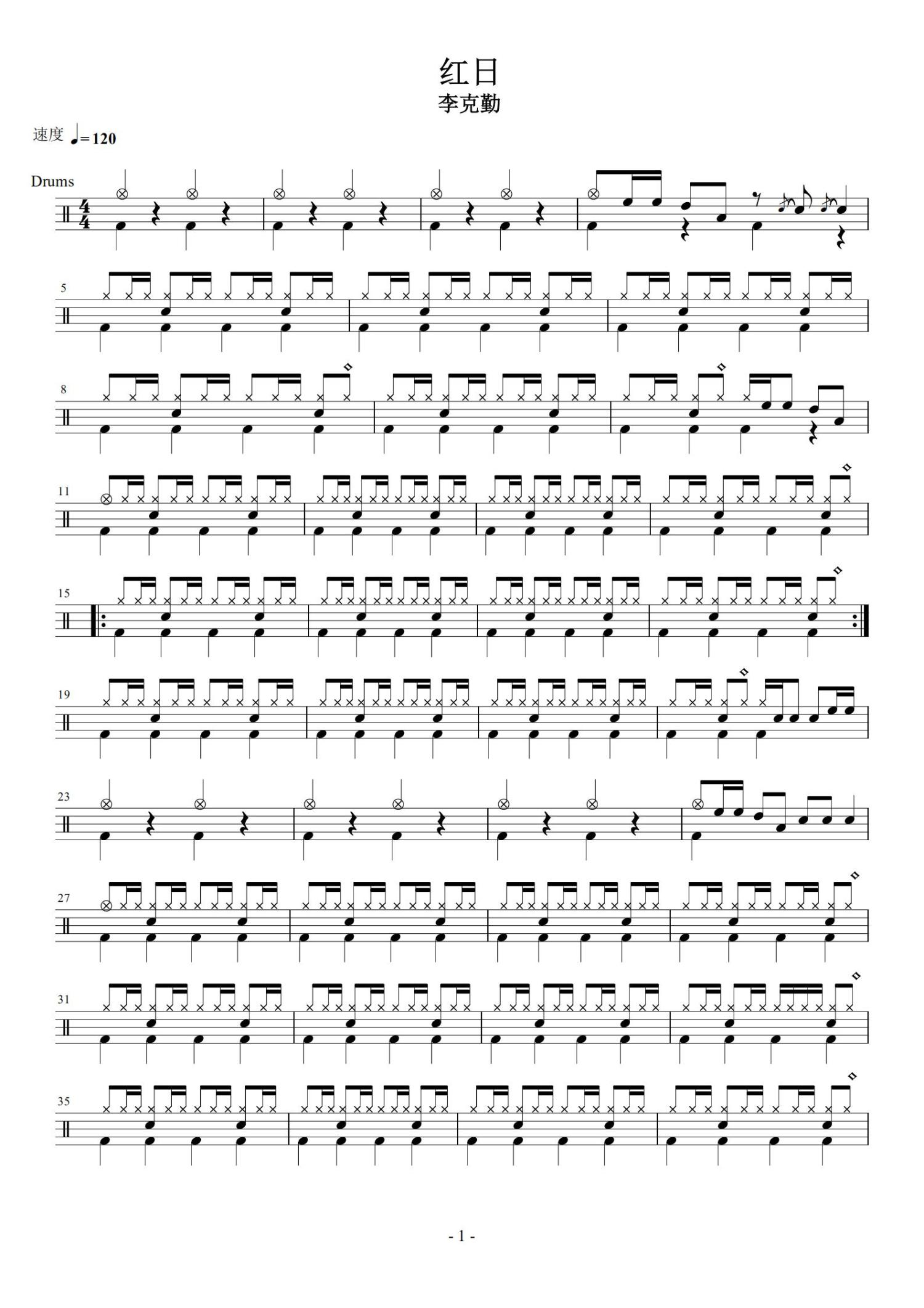 • 红日鼓谱 - 李克勤 - 架子鼓谱第1张