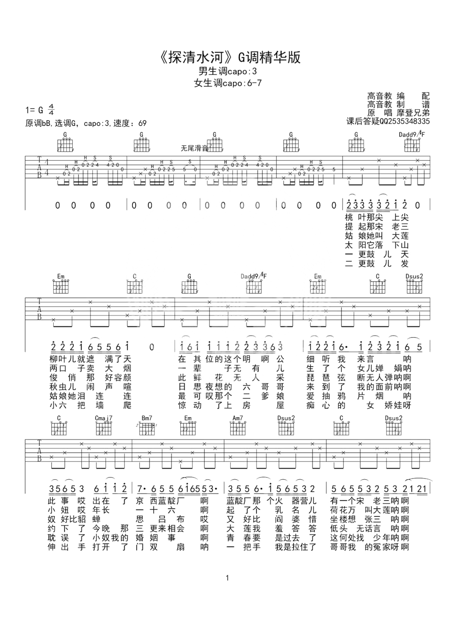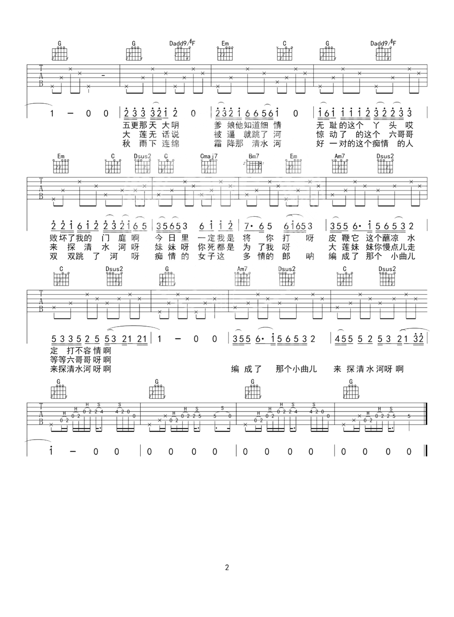 曲谱介绍: 摩登兄弟《探清水河》吉他谱_G调吉他弹唱谱