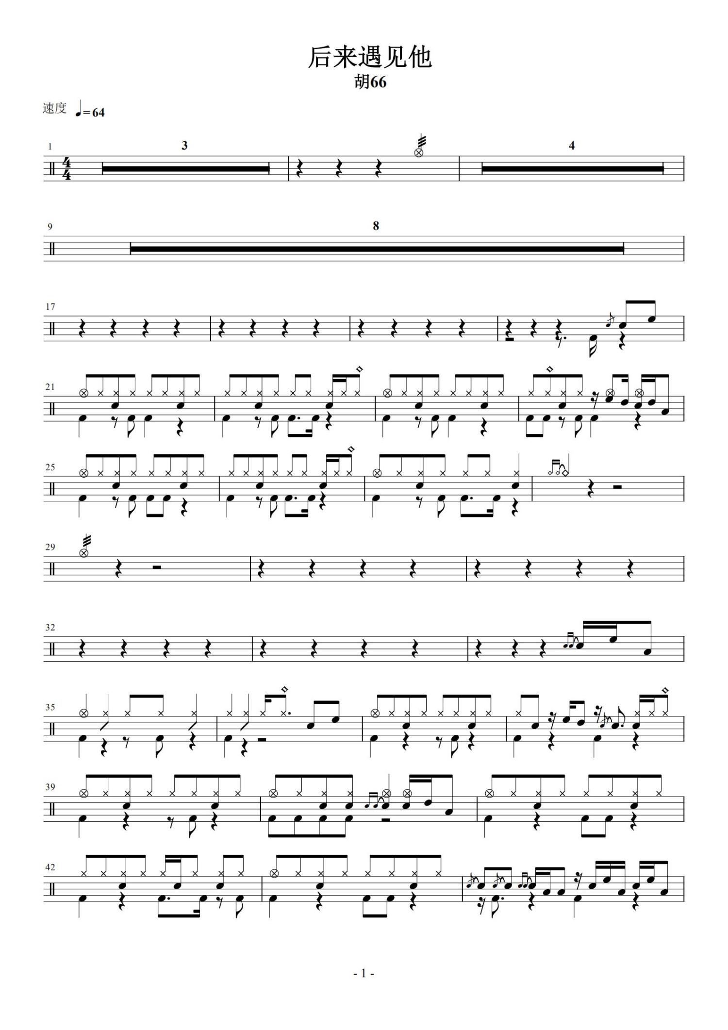 • 后来遇见他鼓谱 - 胡66 - 架子鼓谱第1张