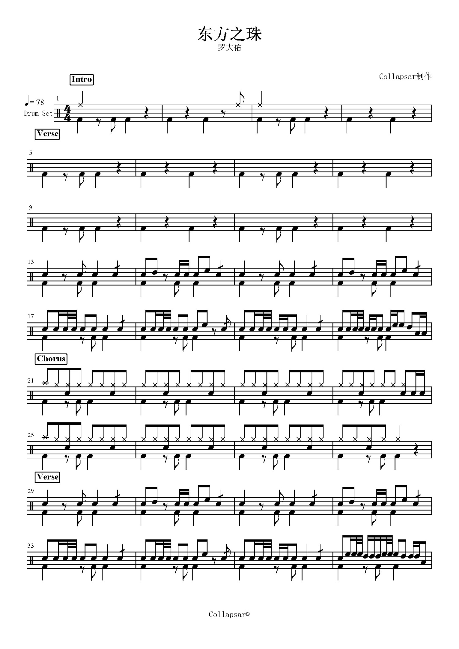 • 东方之珠鼓谱 - 罗大佑 - 架子鼓谱第1张