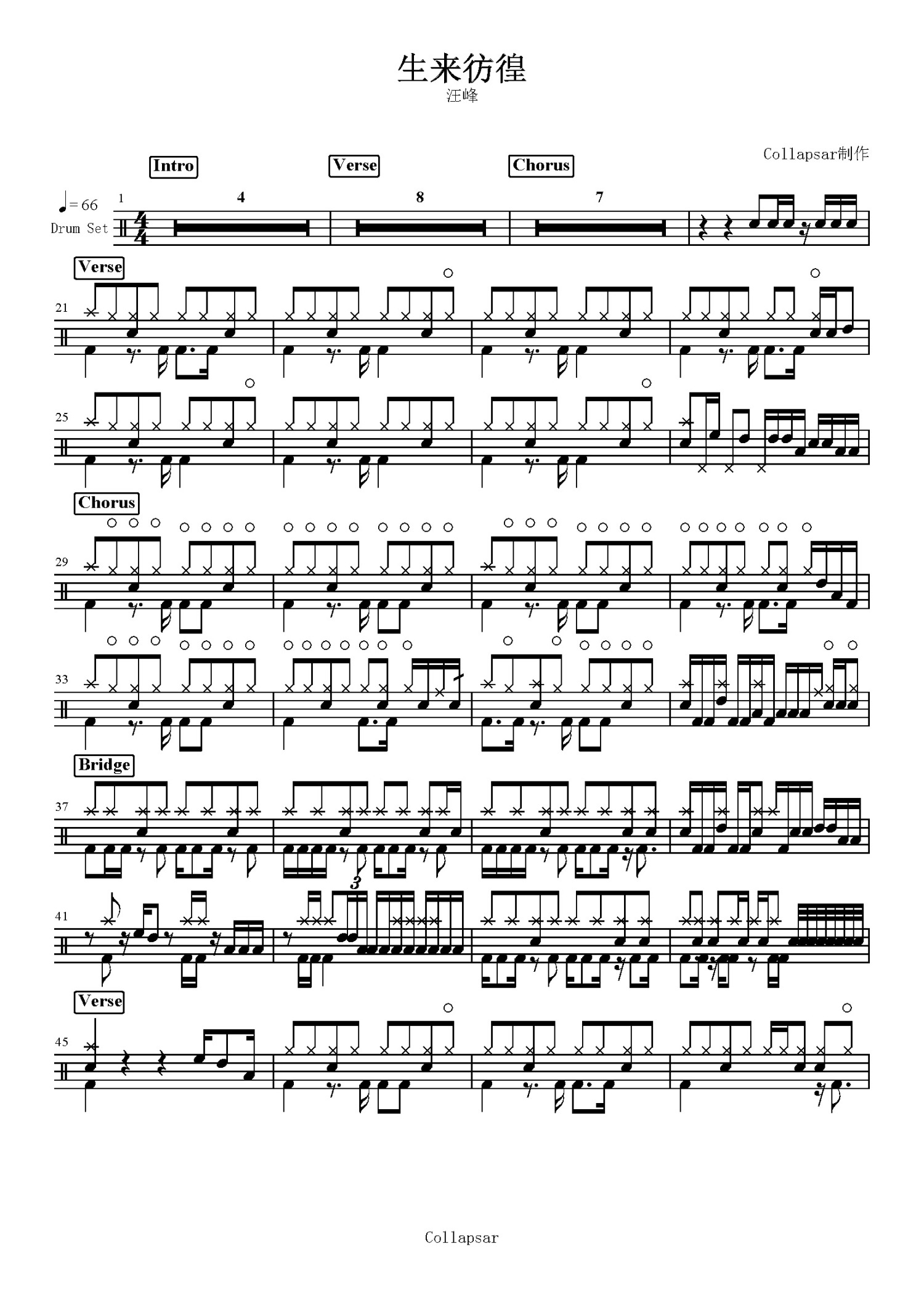 • 生来彷徨鼓谱 - 汪峰 - 架子鼓谱第1张
