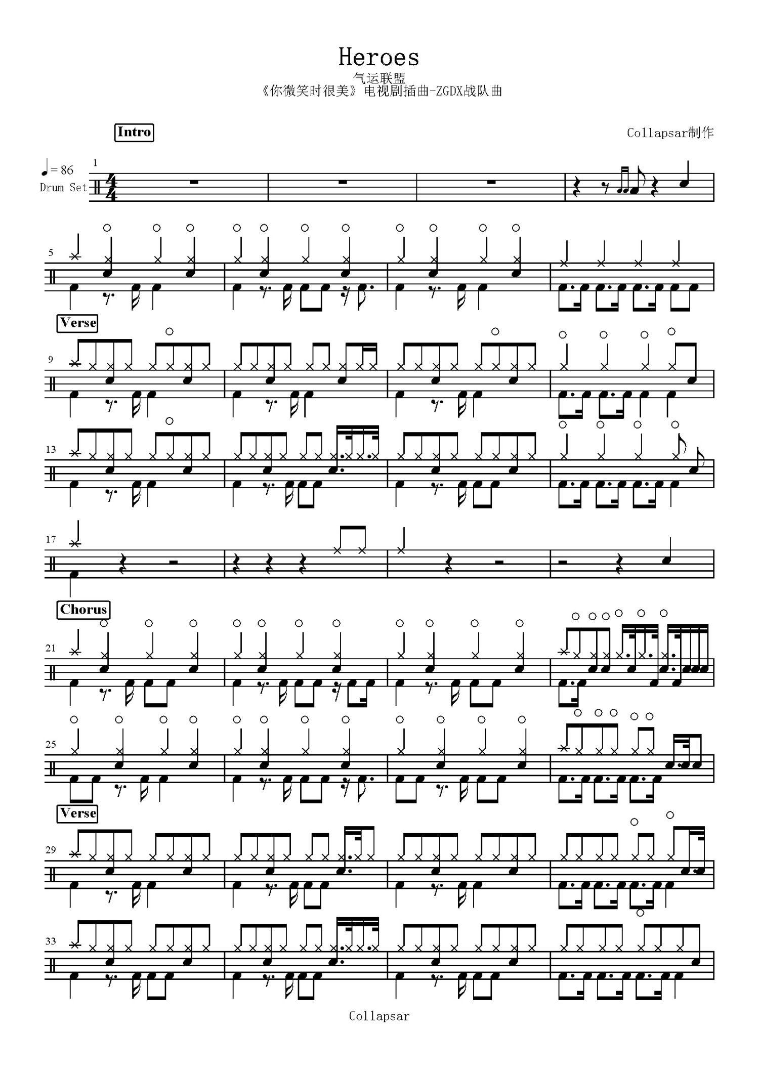• Heroes鼓谱 - 气运联盟 - 架子鼓谱第1张
