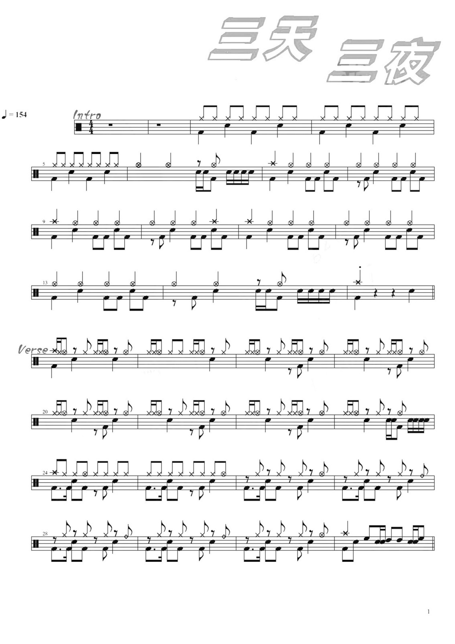当前位置:琴谱网>架子鼓谱>三天三夜