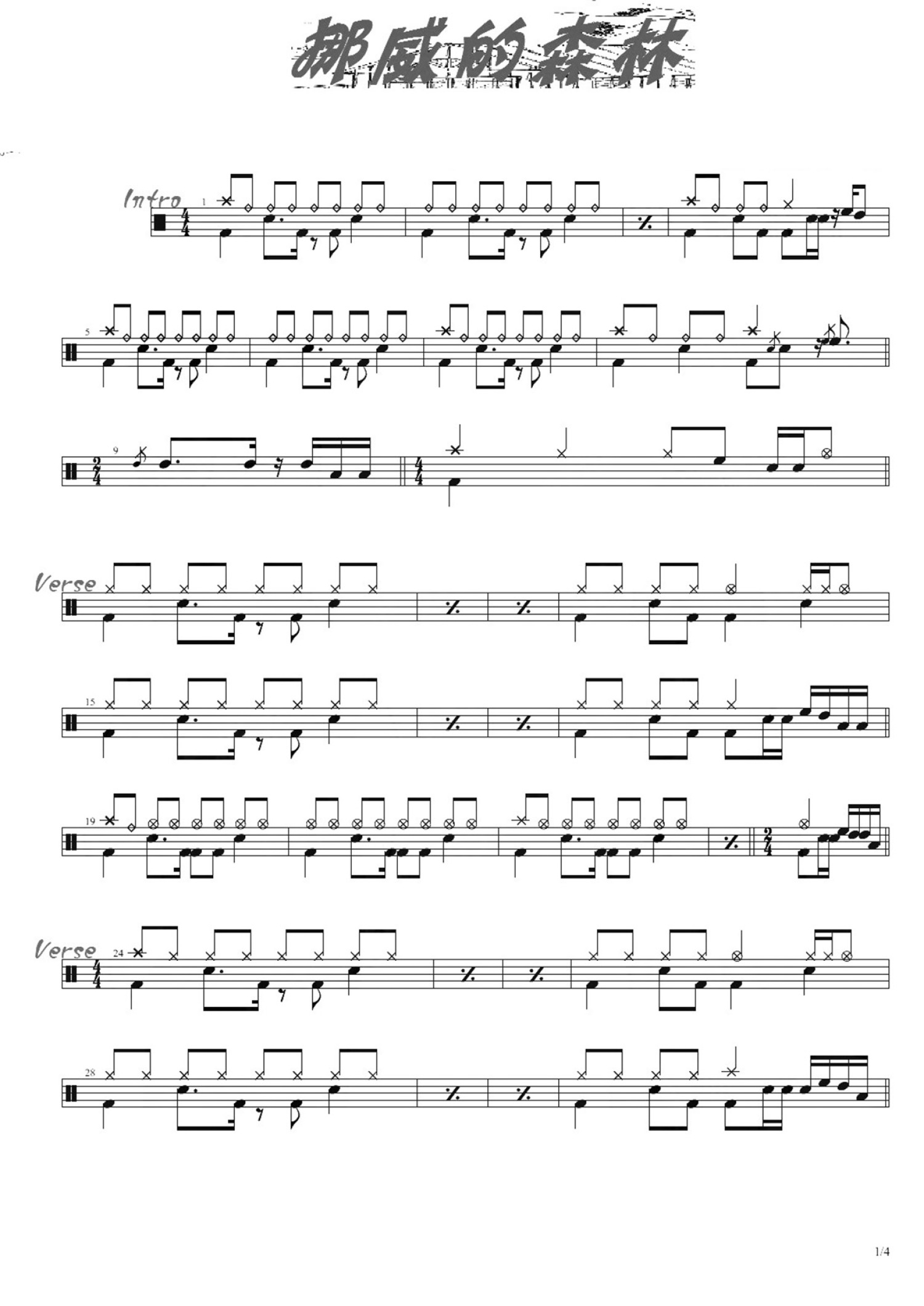 • 挪威的森林鼓谱 - 伍佰 - 架子鼓谱第1张