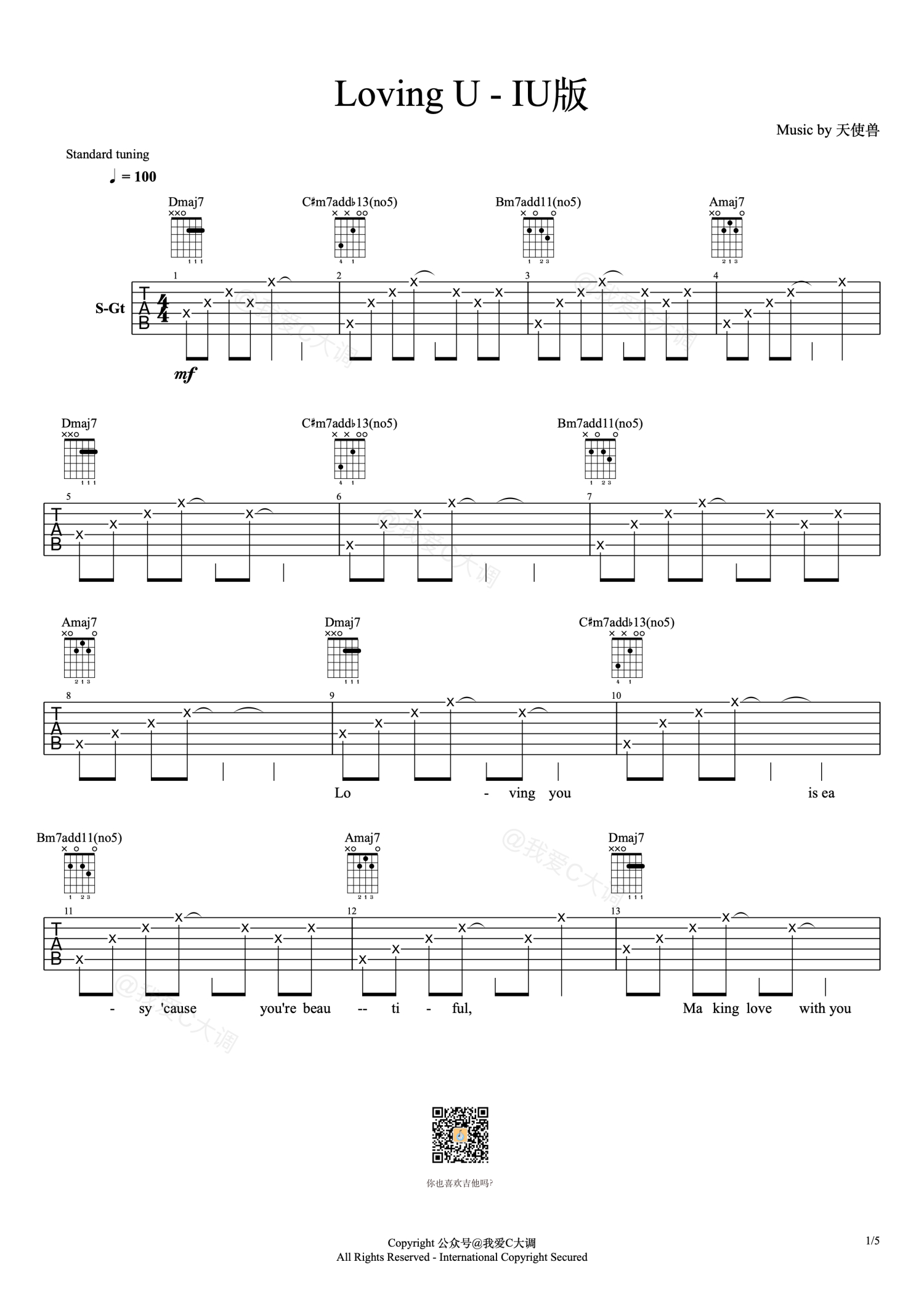 Loving You吉他谱 - 天使兽 - C调吉他弹唱谱