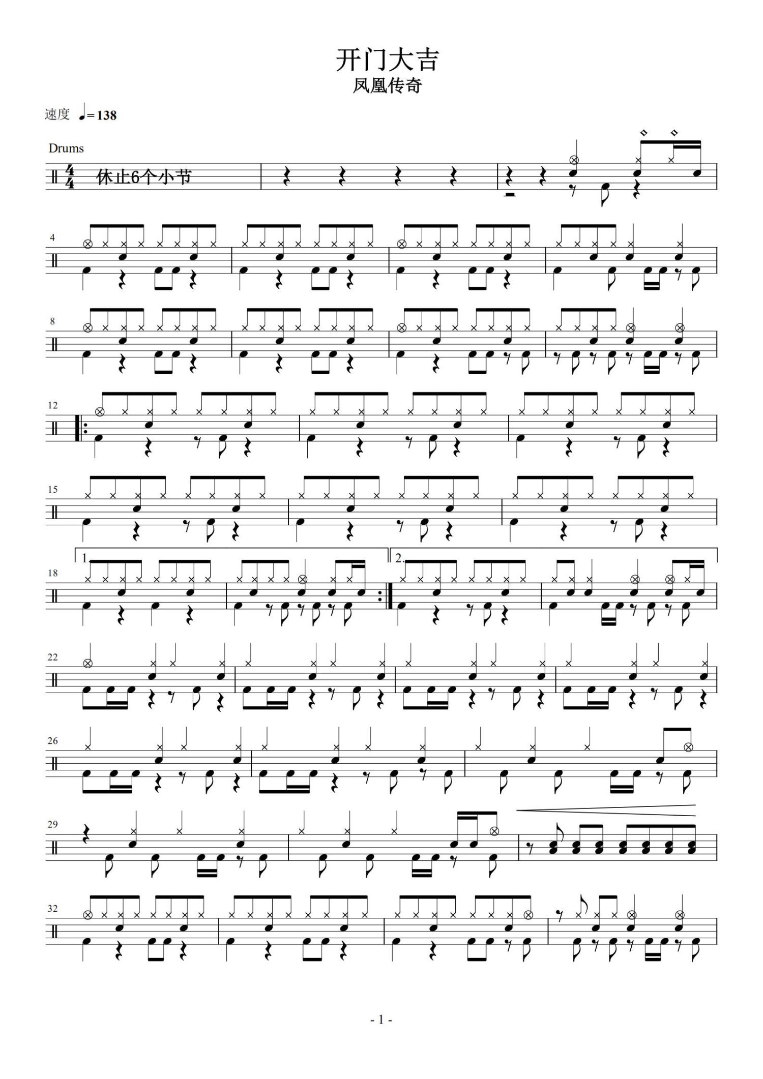 • 开门大吉鼓谱 - 凤凰传奇 - 架子鼓谱第1张