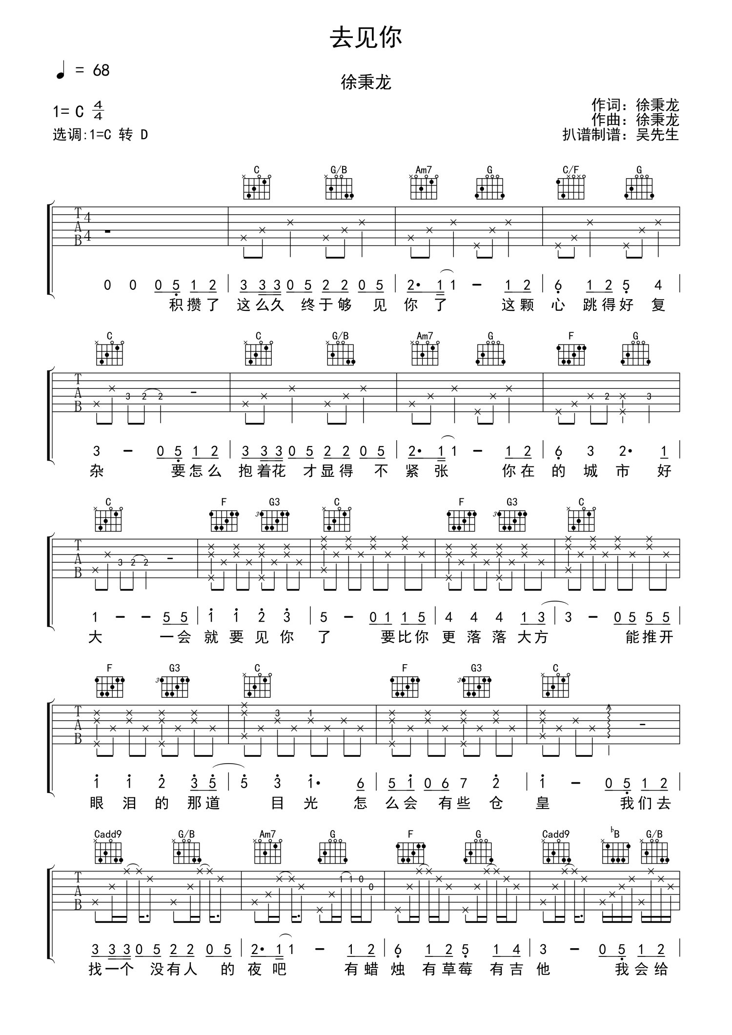 • 去见你吉他谱 - 徐秉龙 - C调吉他弹唱谱第1张