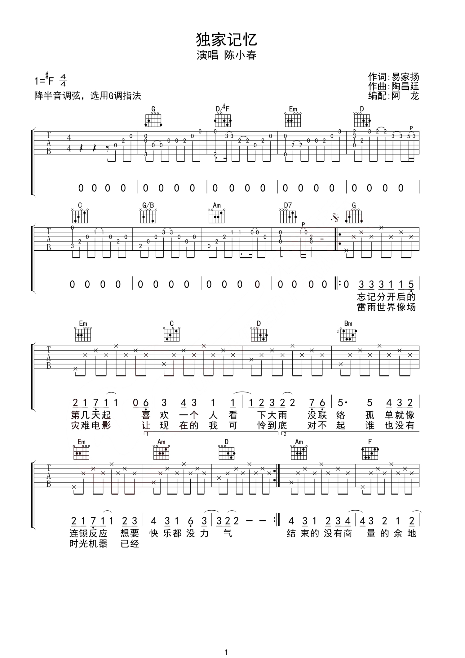 独家记忆吉他谱 - 陈小春 - G调吉他弹唱谱