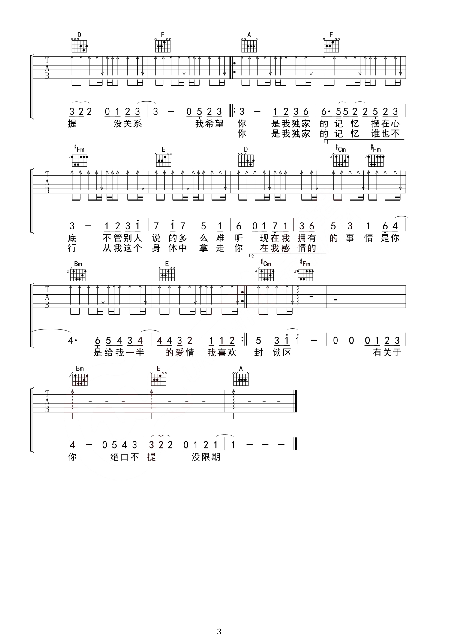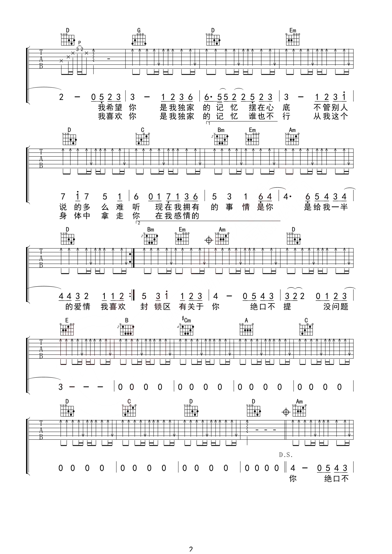 当前位置:琴谱网>吉他弹唱>独家记忆