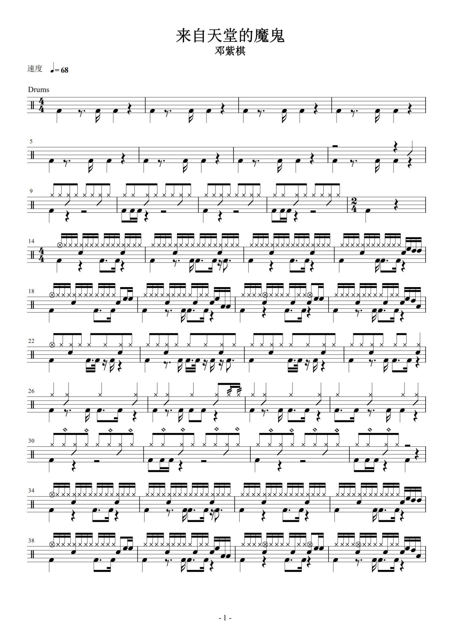 • 来自天堂的魔鬼鼓谱 - 邓紫棋 - 架子鼓谱第1张
