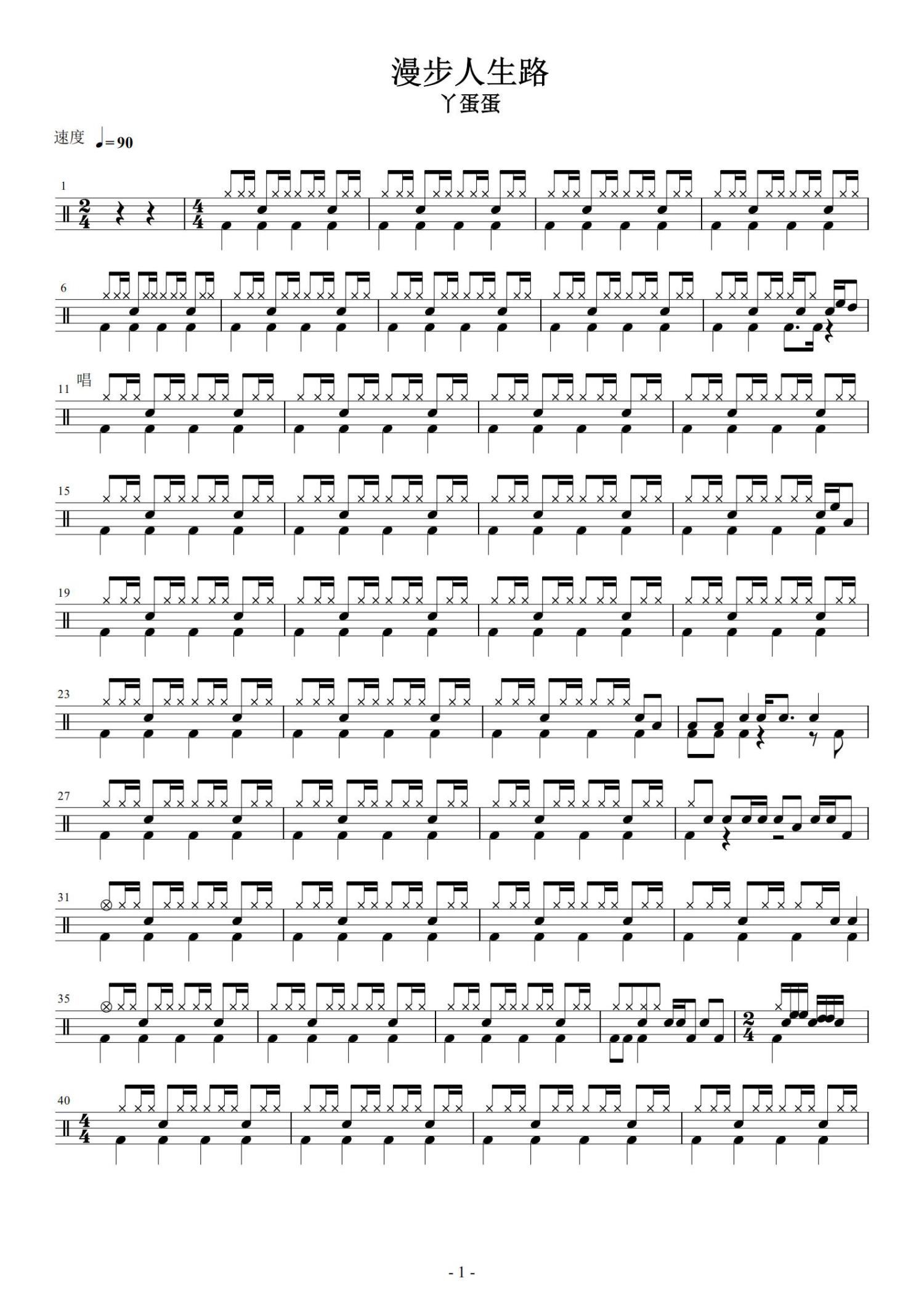 • 漫步人生路鼓谱 - 丫蛋蛋 - 架子鼓谱第1张