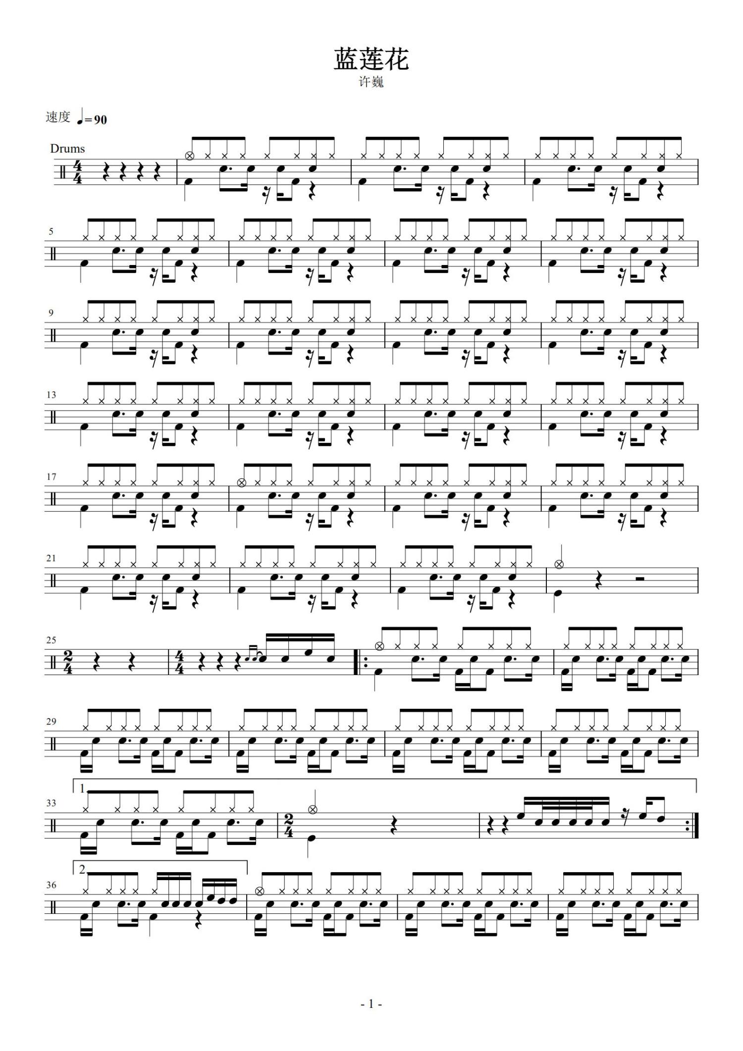 • 蓝莲花鼓谱 - 许巍 - 架子鼓谱第1张