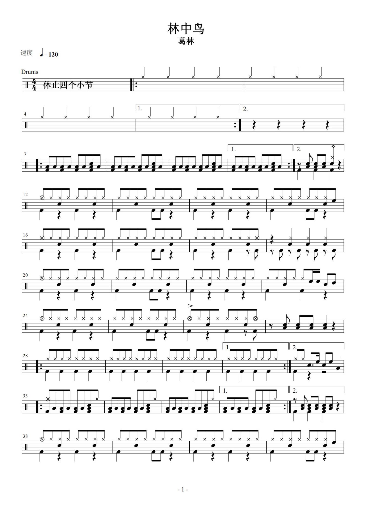 • 林中鸟鼓谱 - 葛林 - 架子鼓谱第1张
