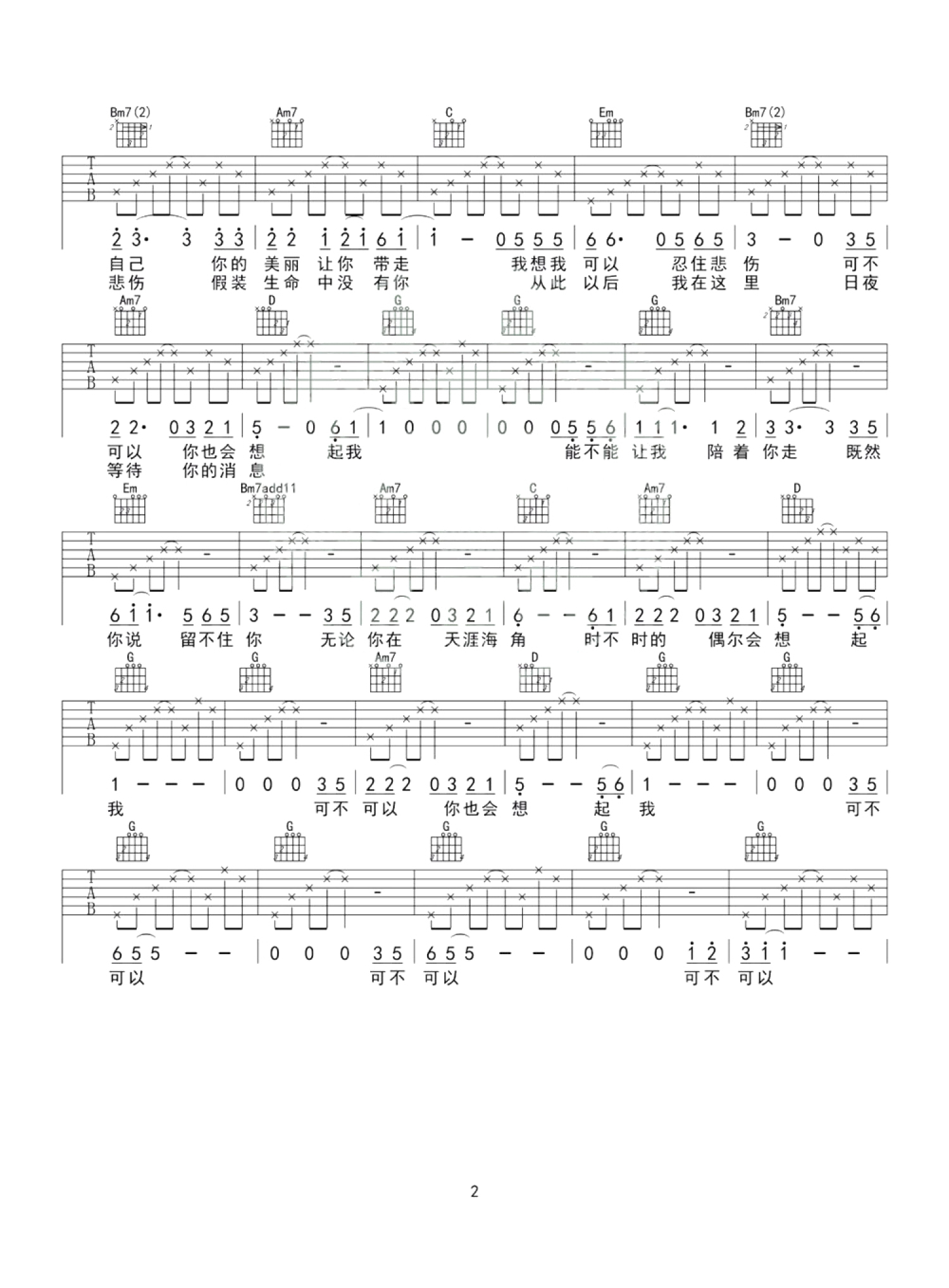 当前位置:琴谱网>吉他弹唱>把悲伤留给自己