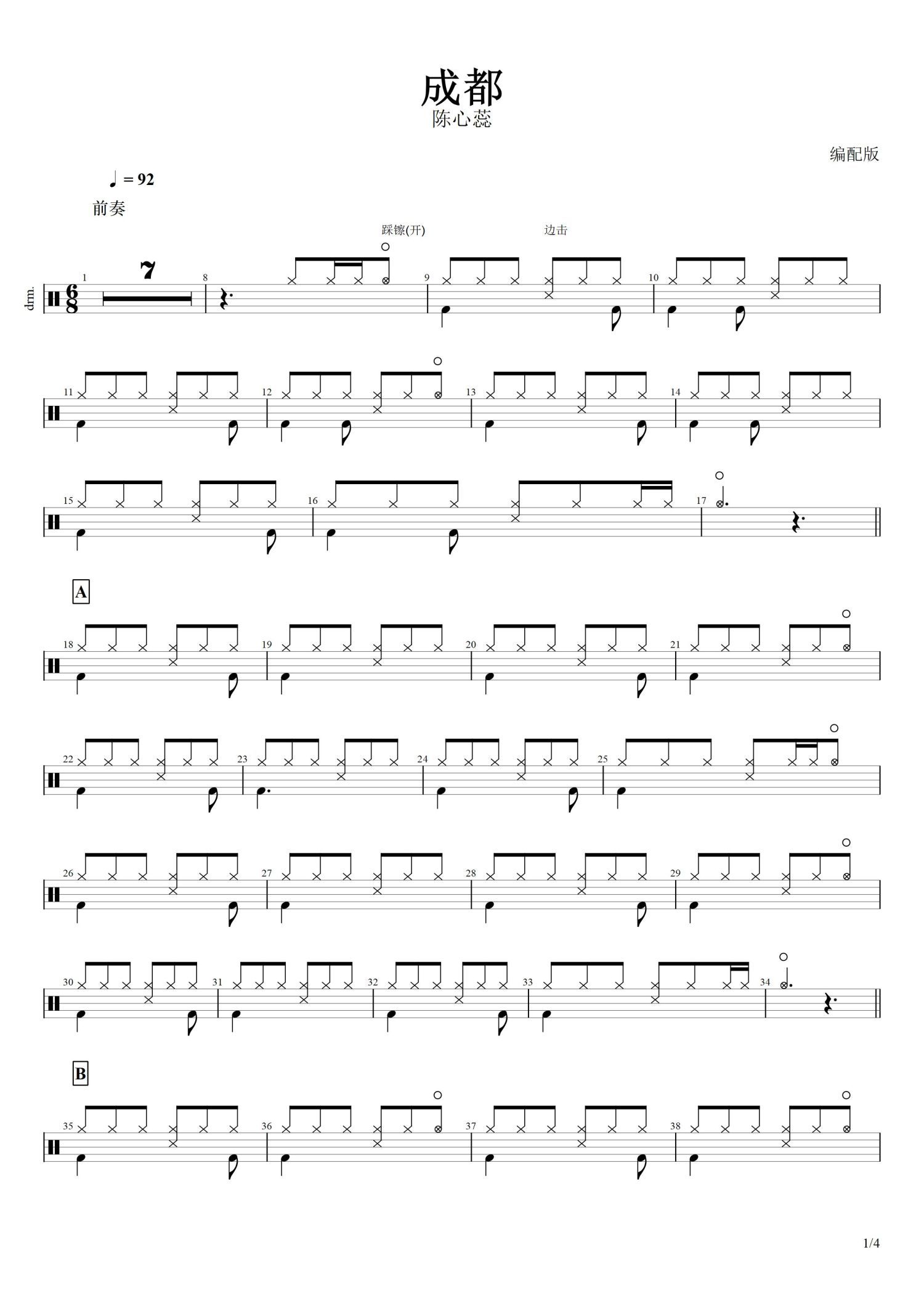 • 成都鼓谱 - 陈心蕊(编配版) - 架子鼓谱第1张