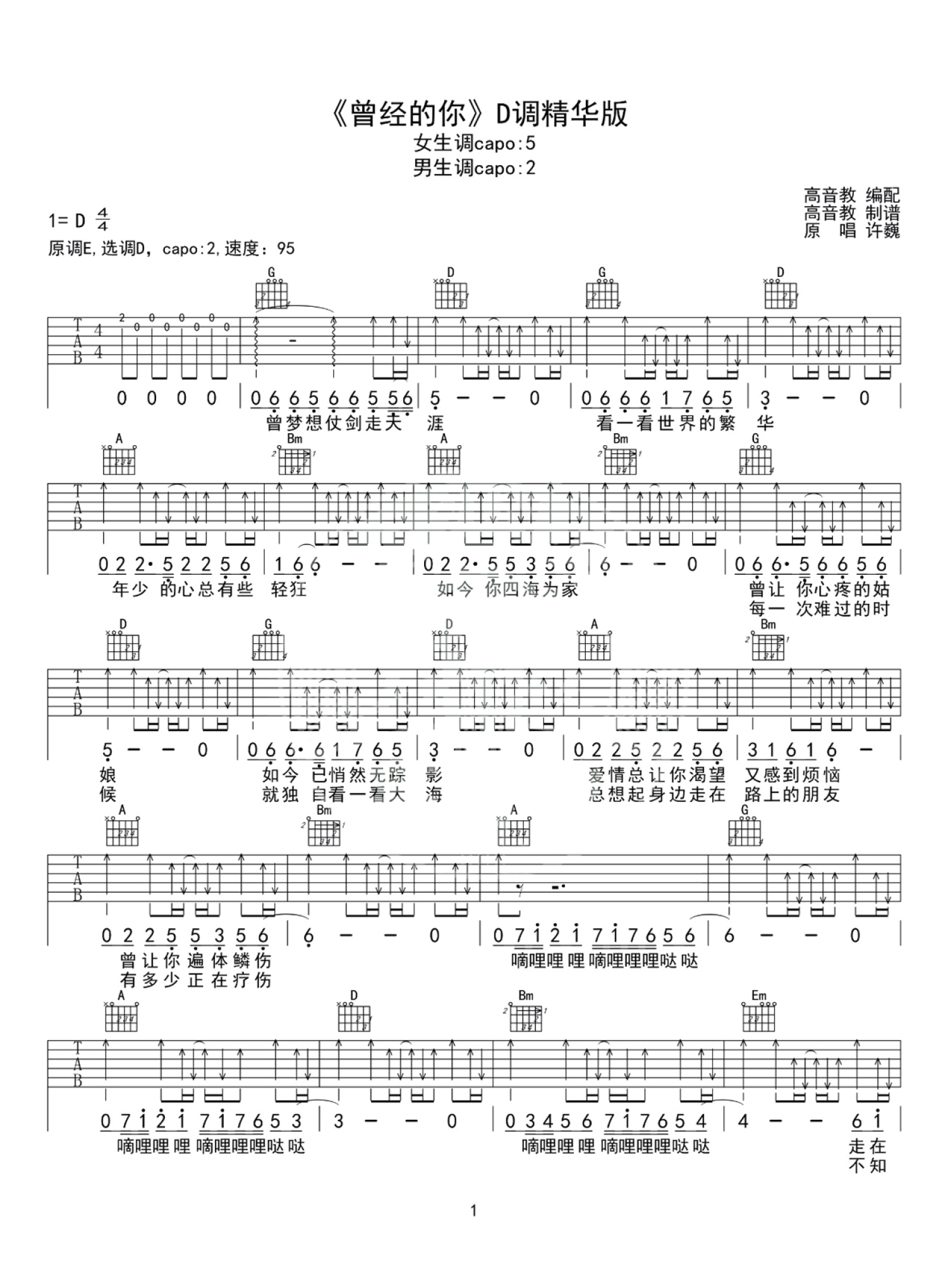 曲谱介绍: 许巍《曾经的你》吉他谱_D调吉他弹唱谱