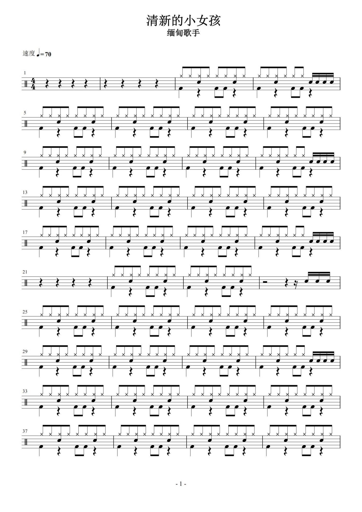 当前位置:琴谱网>架子鼓谱>清新的小女孩