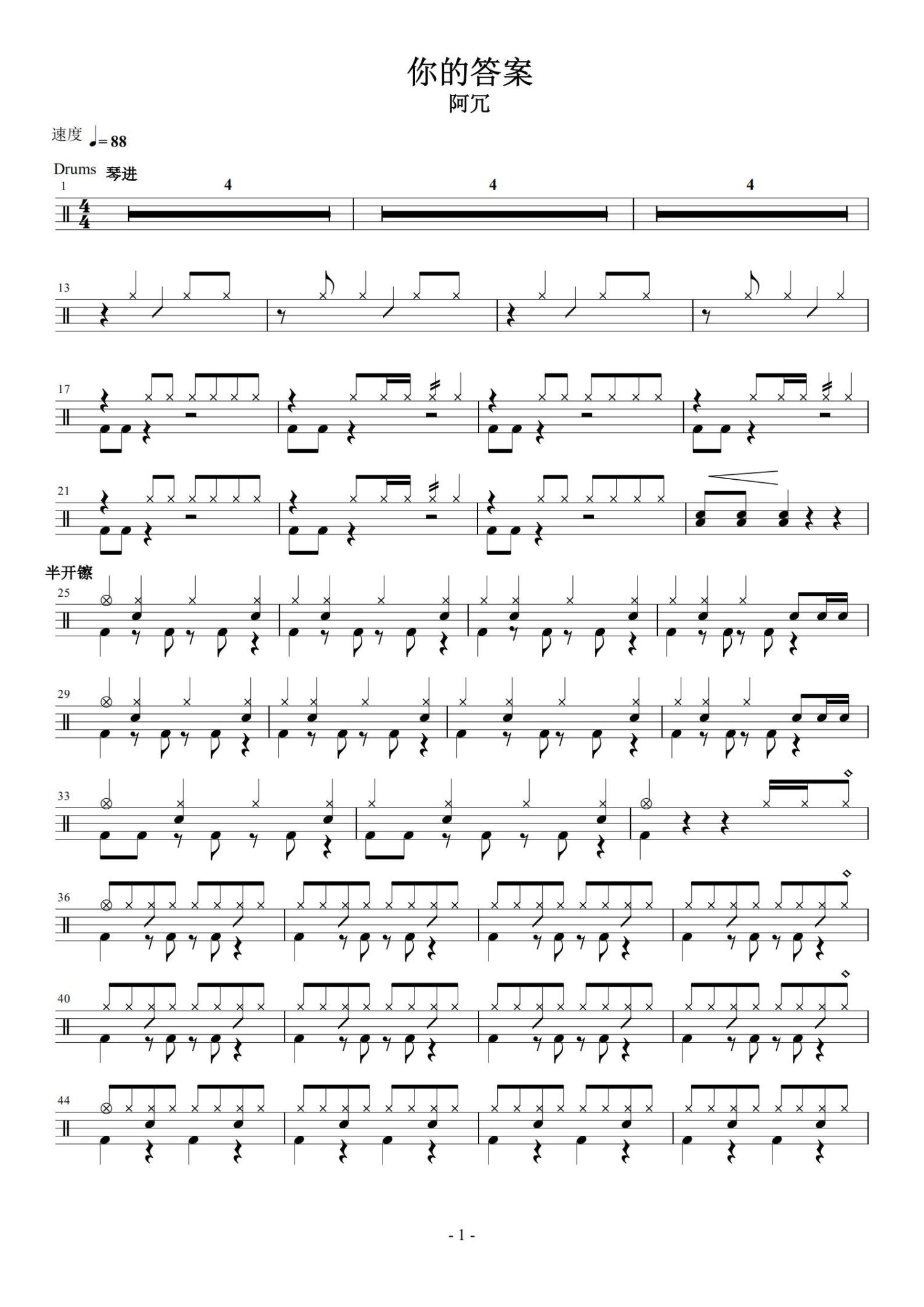 • 你的答案鼓谱 - 阿冗 - 架子鼓谱第1张