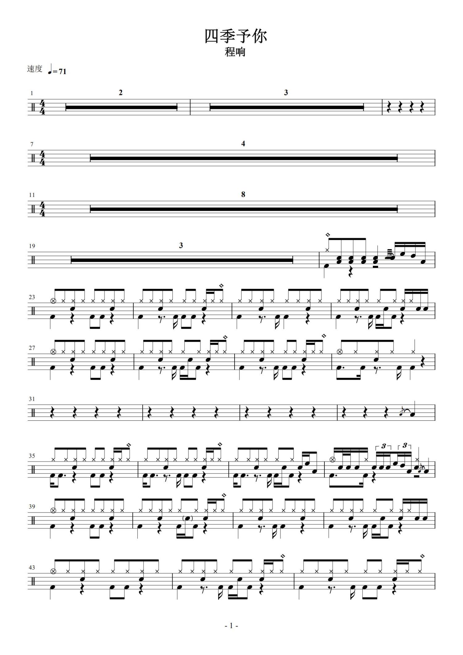 • 四季予你鼓谱 - 程响 - 架子鼓谱第1张