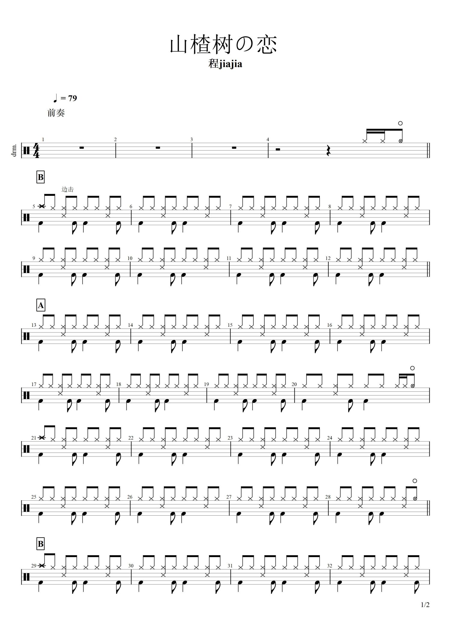 • 山楂树之恋鼓谱 - 程佳佳 - 架子鼓谱第1张
