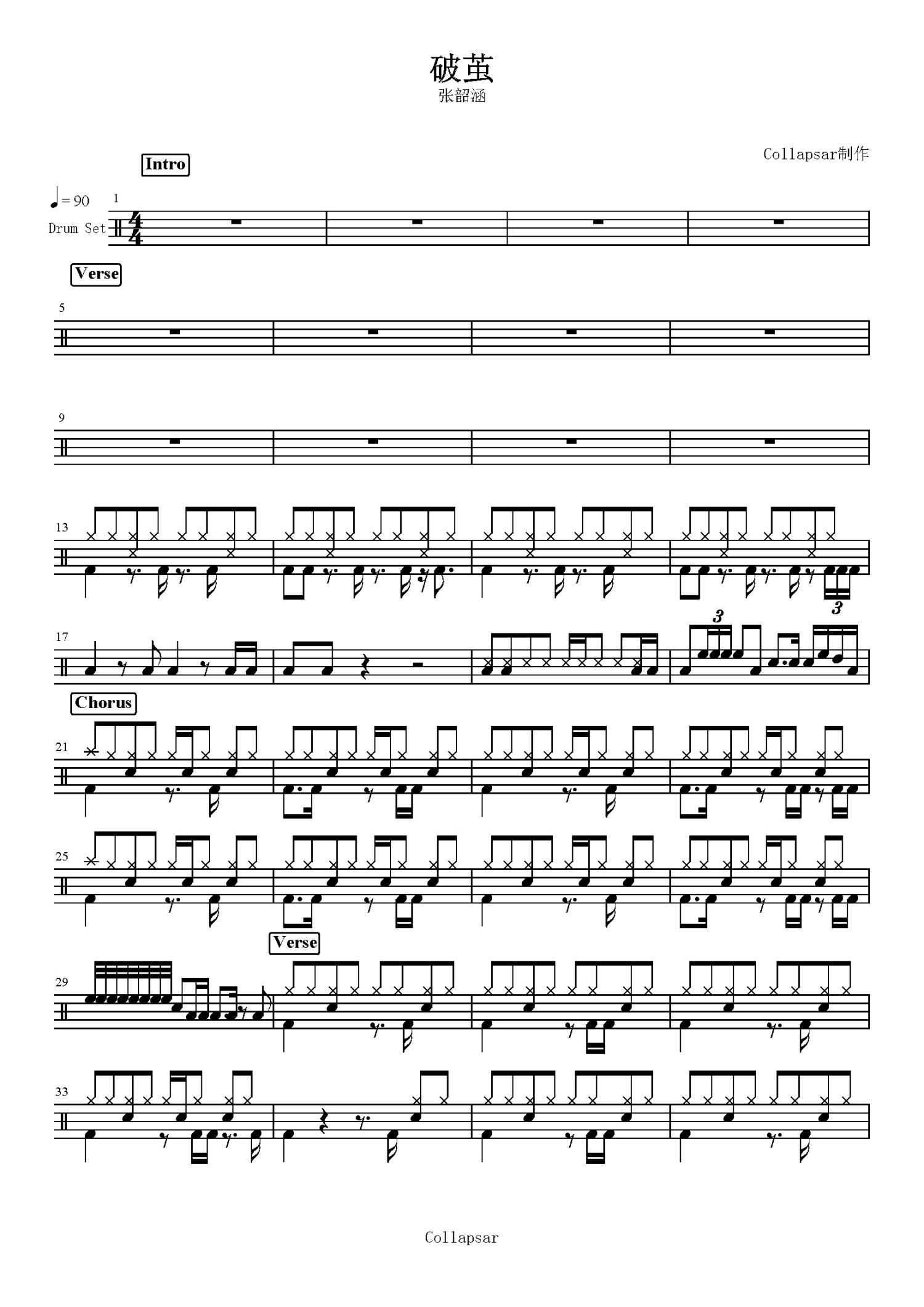 • 破茧鼓谱 - 张韶涵 - 架子鼓谱第1张
