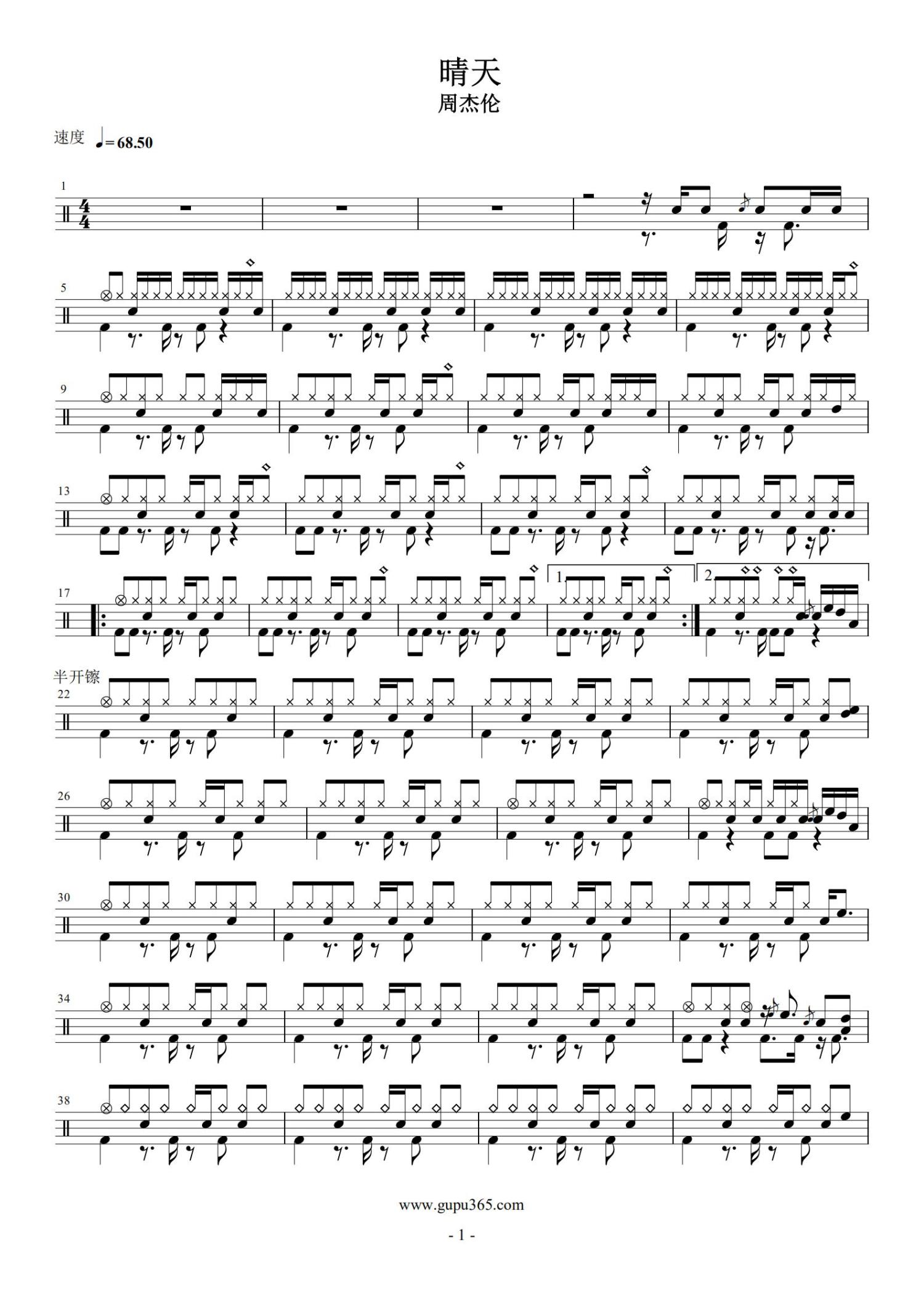 • 晴天鼓谱 - 周杰伦 - 架子鼓谱第1张