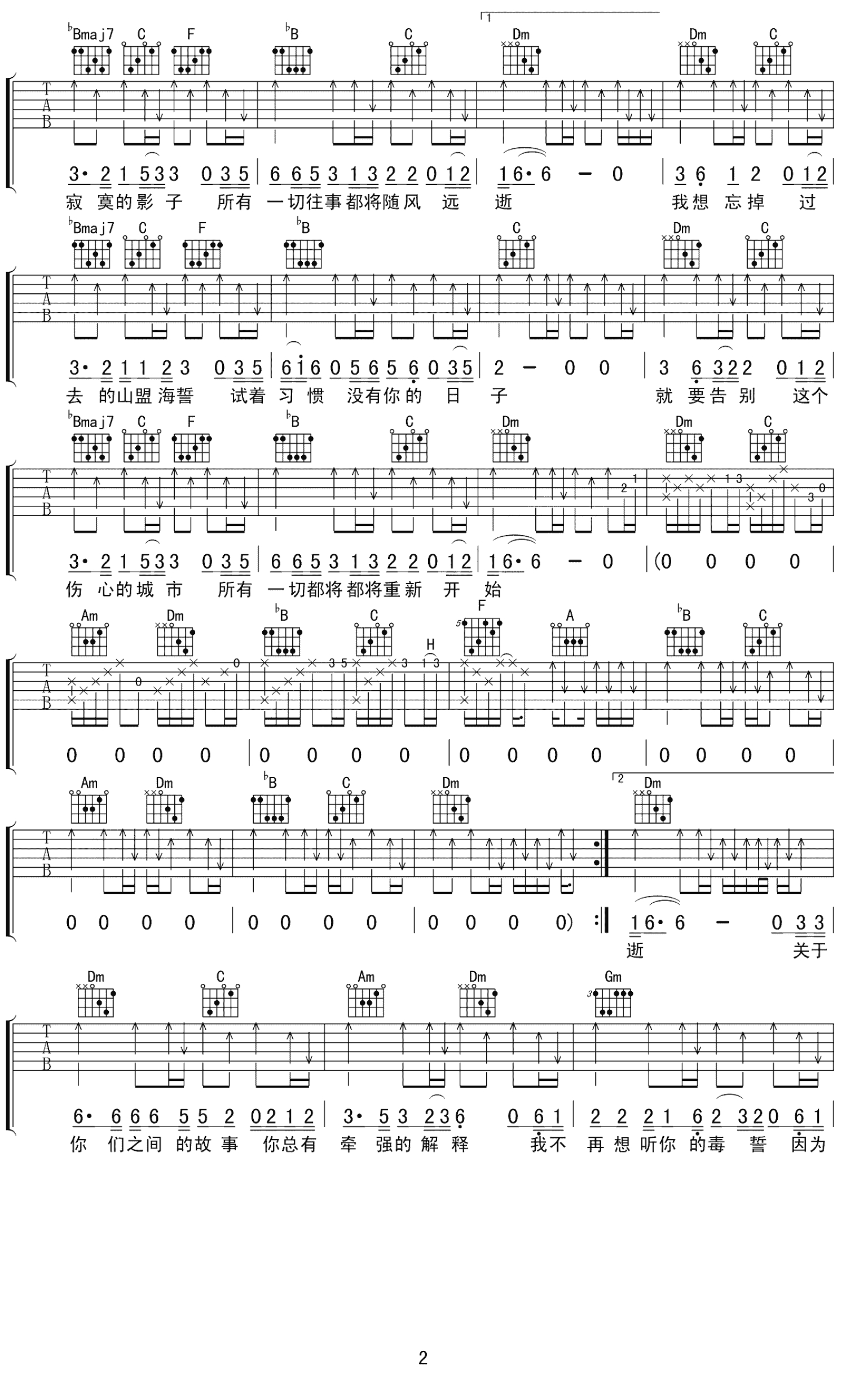 曲谱介绍: 伤心城市吉他谱-冷漠