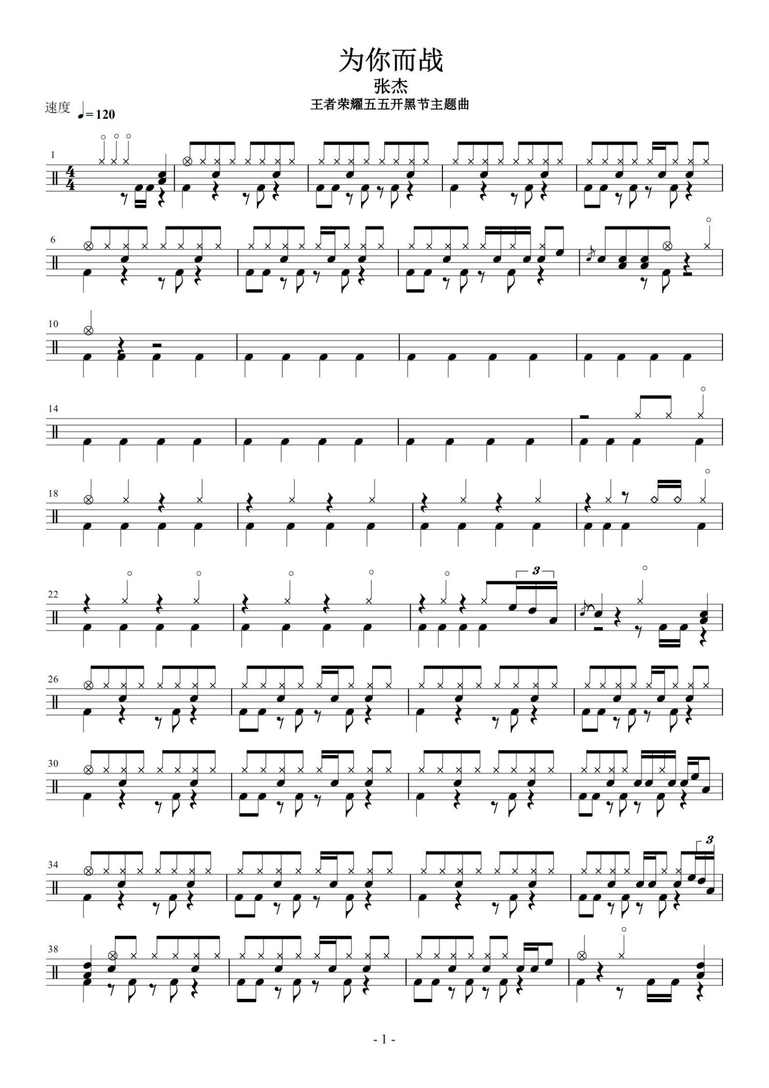 • 为你而战鼓谱 - 张杰 - 架子鼓谱第1张