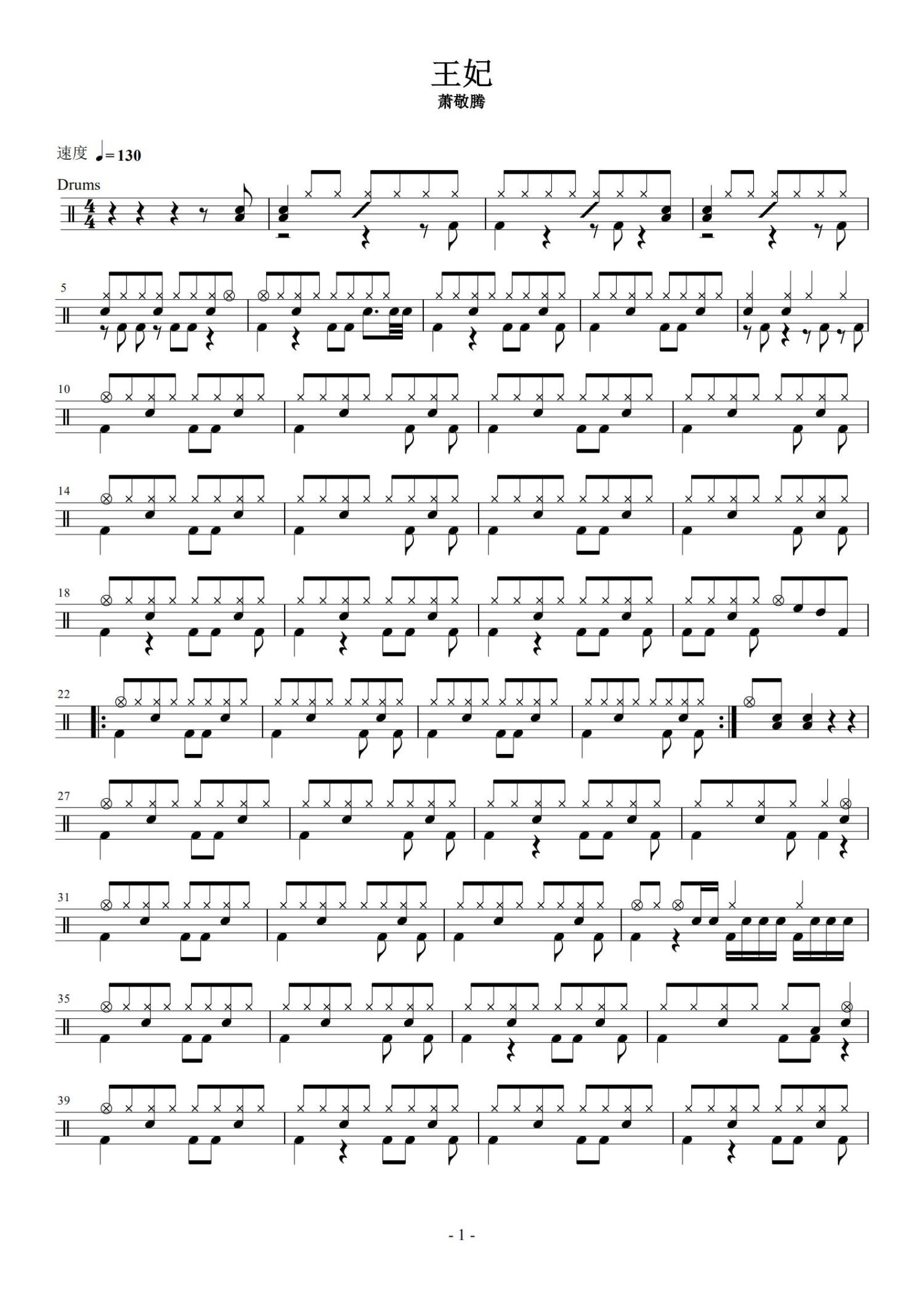 • 王妃鼓谱 - 萧敬腾 - 架子鼓谱第1张