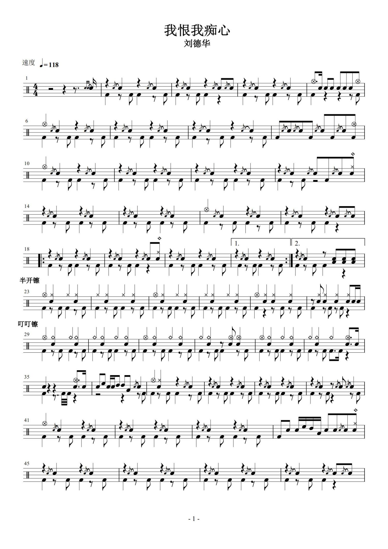 • 我恨我痴心鼓谱 - 刘德华 - 架子鼓谱第1张