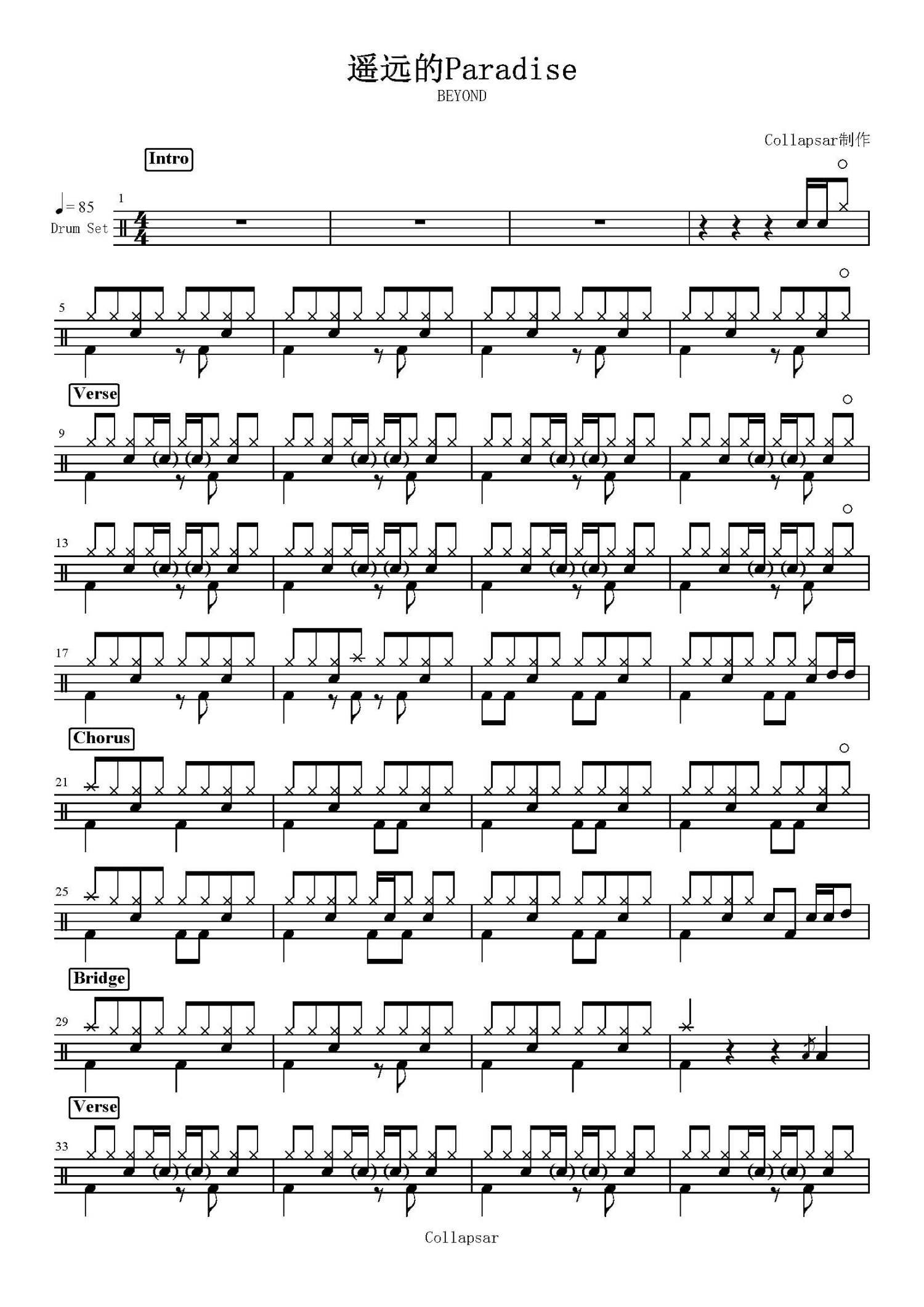 遥远的Paradise鼓谱 - Beyond - 架子鼓谱