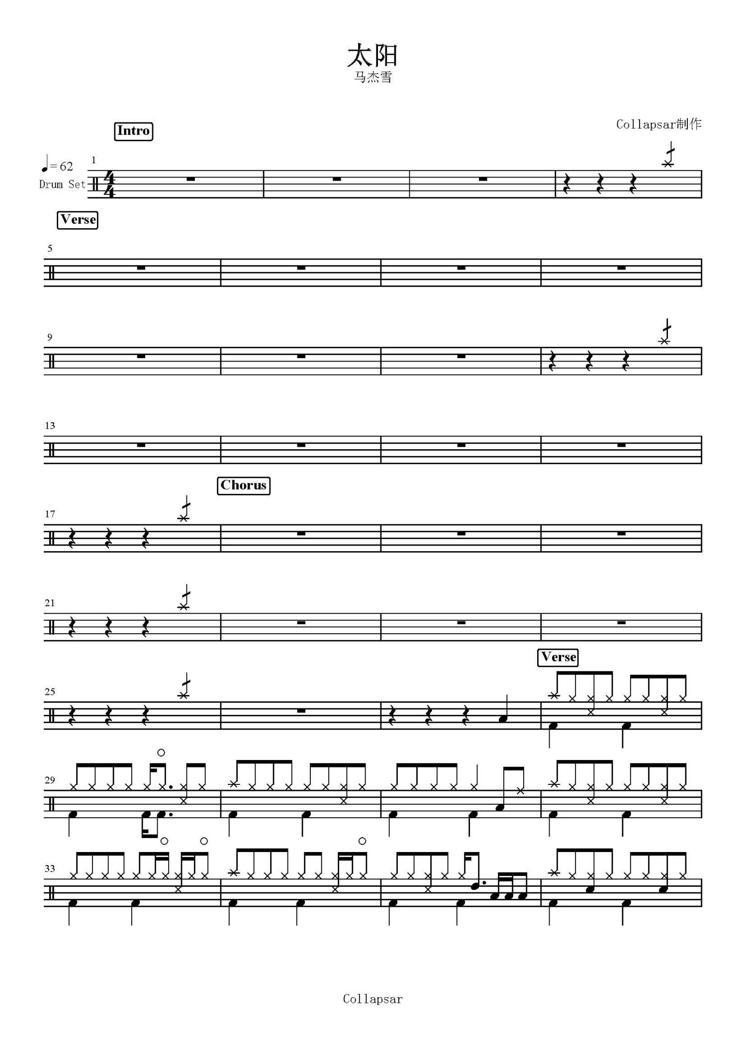 • 太阳鼓谱 - 马杰雪 - 架子鼓谱第1张