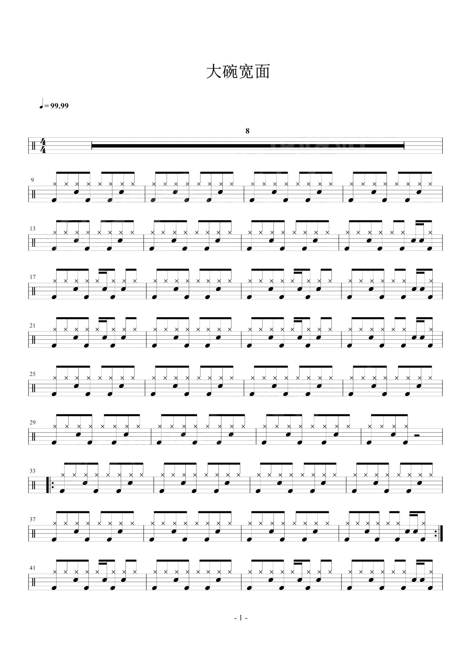 • 大碗宽面鼓谱 - 吴亦凡 - 架子鼓谱第1张