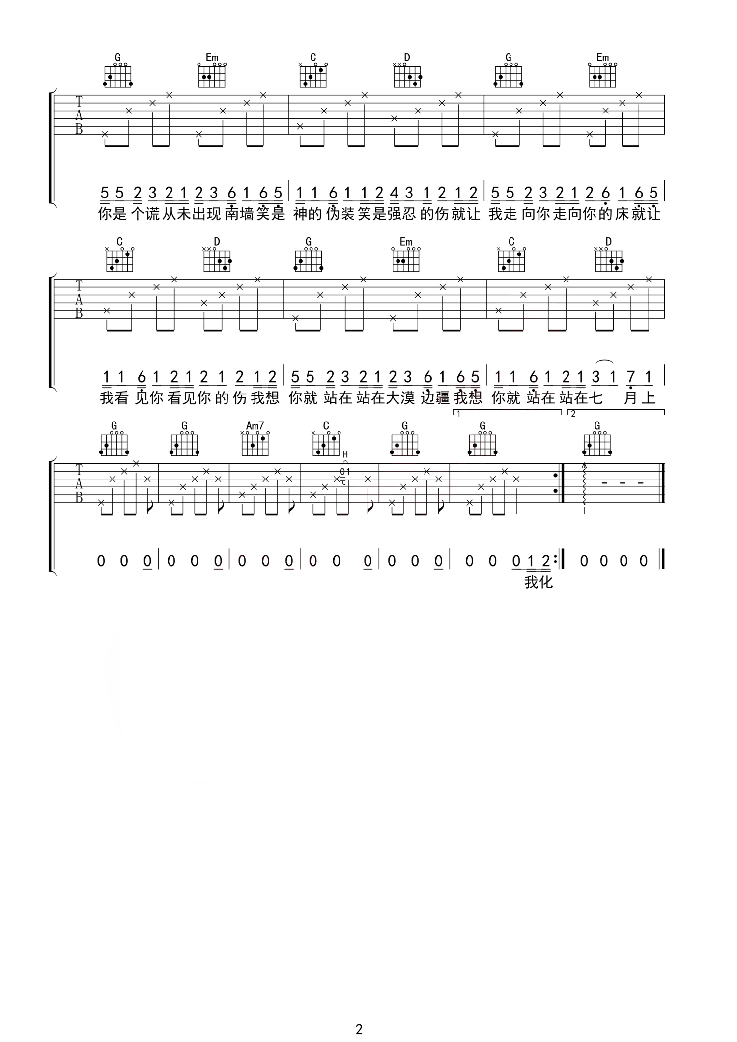 吉他弹唱G调来源:良好市民1360 浏览2019-05-09 22:21发布图谱共2页