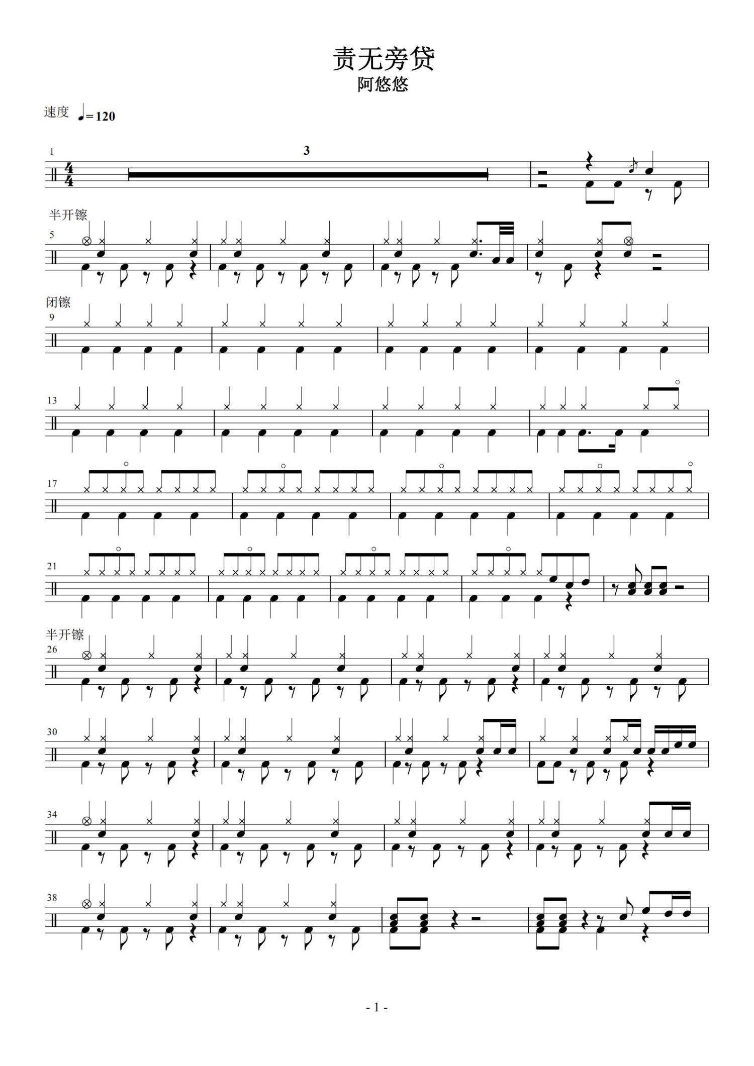 • 责无旁贷鼓谱 - 阿悠悠 - 架子鼓谱第1张