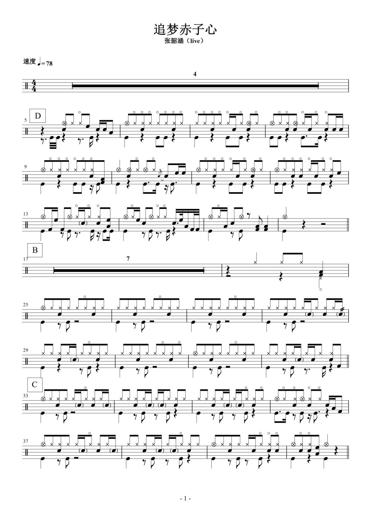 • 追梦赤子心鼓谱 - 张韶涵 - 架子鼓谱第1张