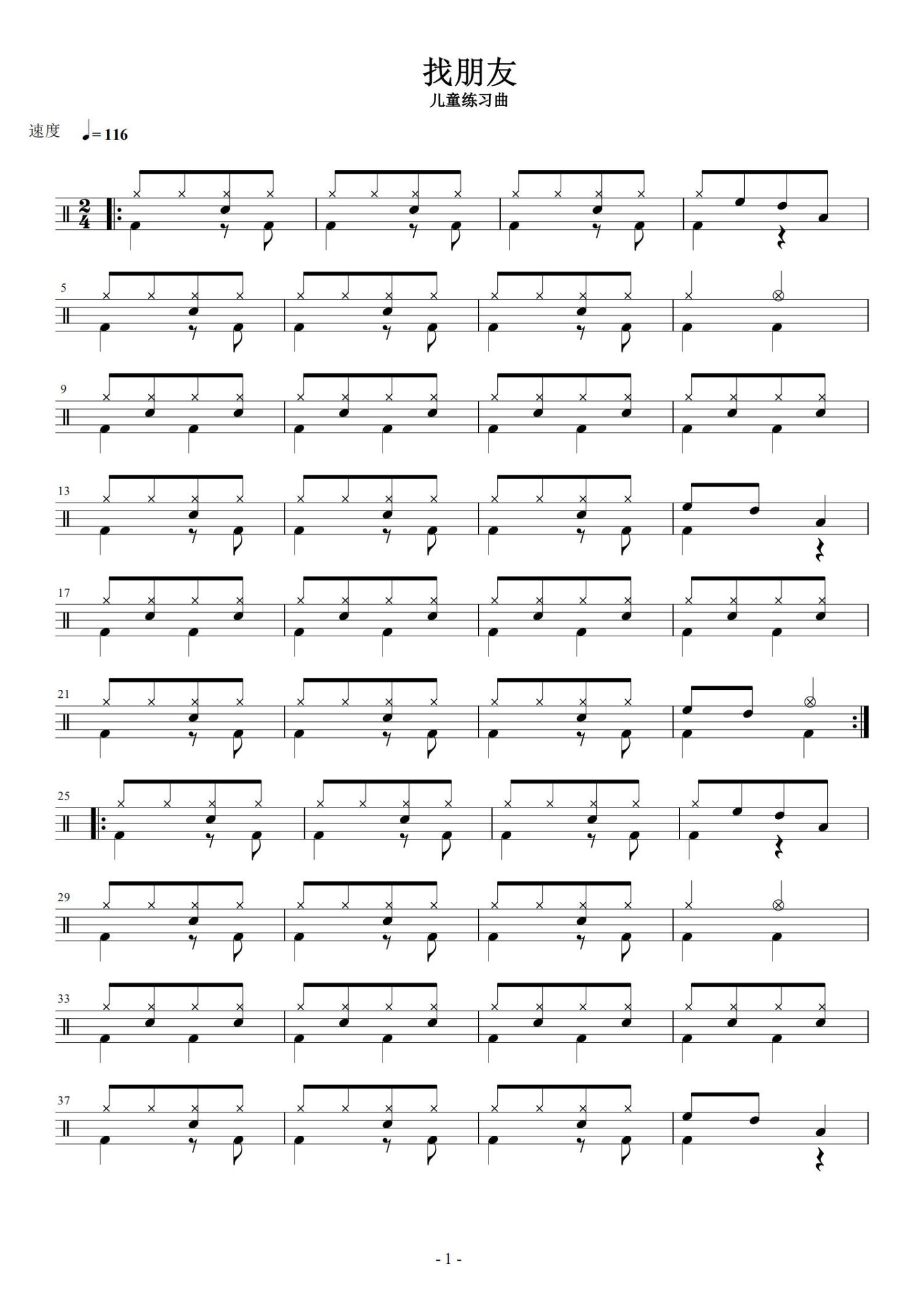 • 找朋友鼓谱 - 儿童练习曲 - 架子鼓谱第1张