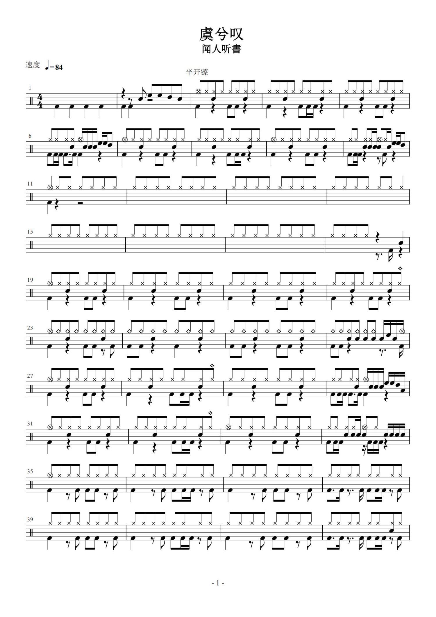 • 虞兮叹鼓谱 - 闻人听书 - 架子鼓谱第1张