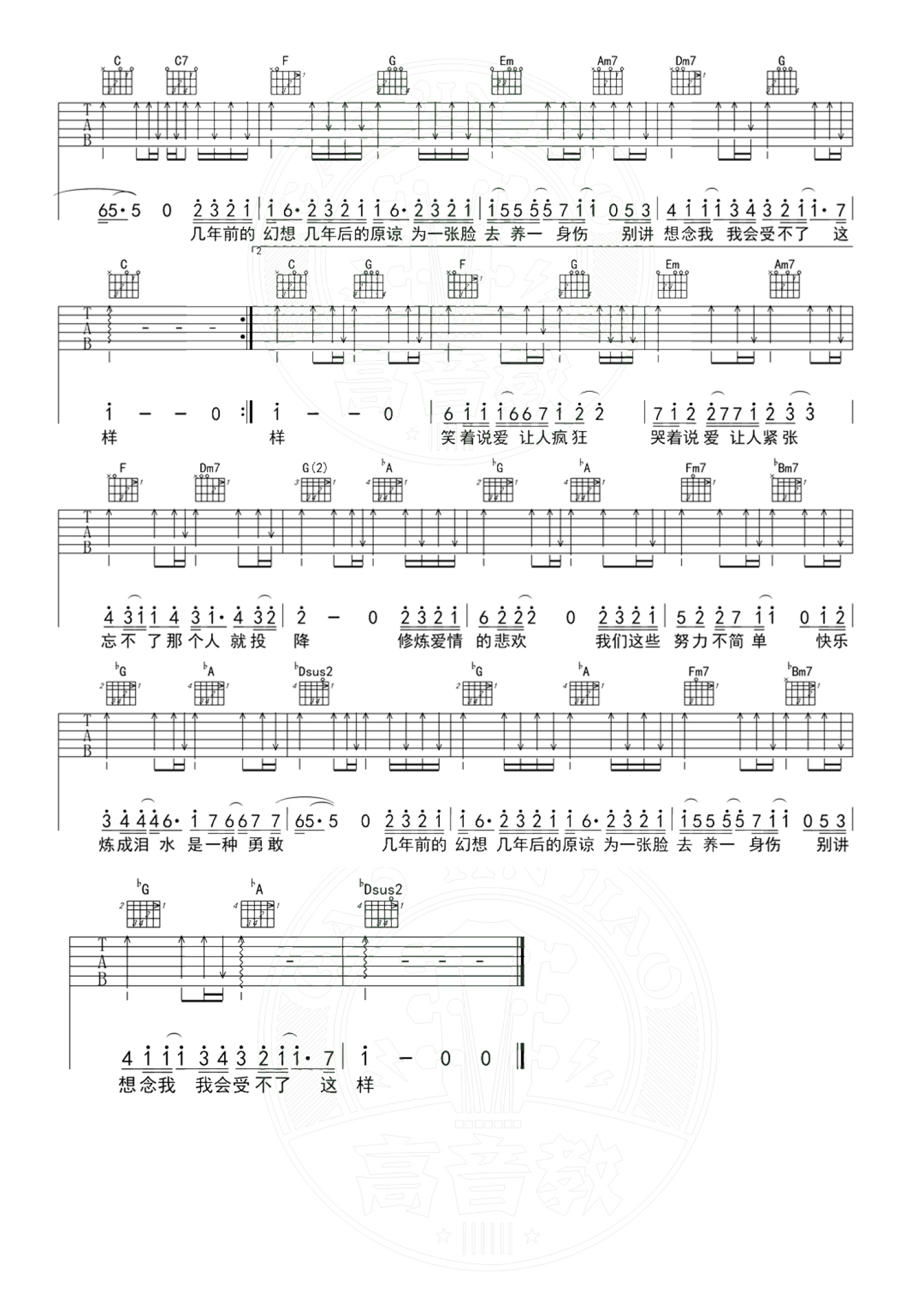 吉他弹唱C调来源:高音教3535 浏览2019-05-09 22:22发布图谱共2页