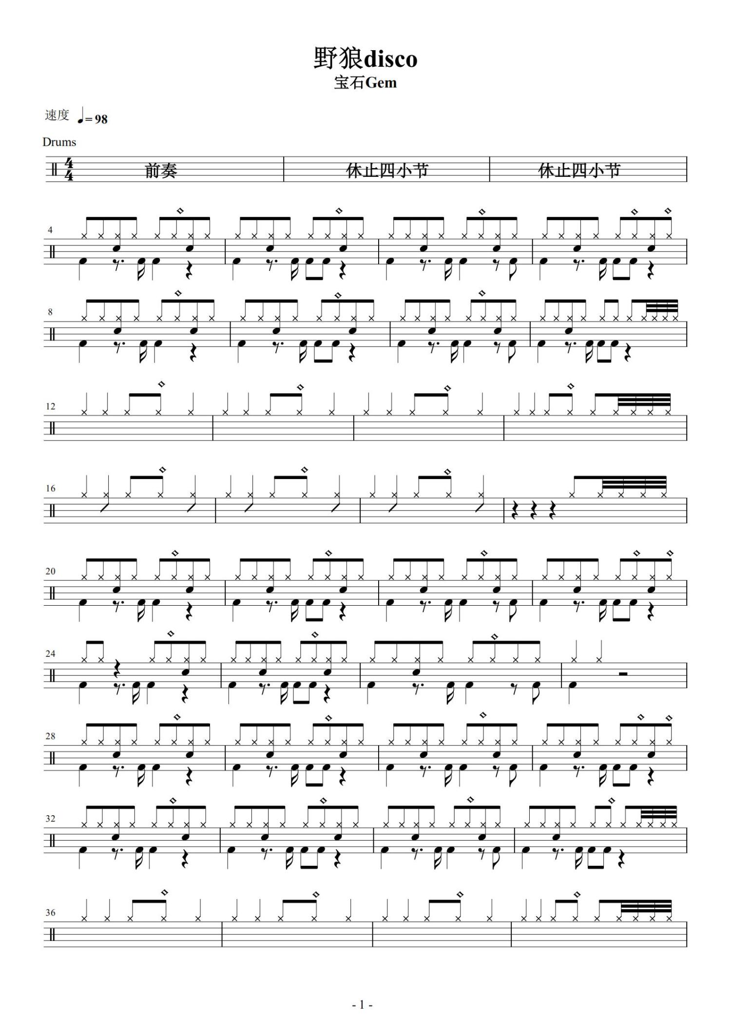• 野狼disco鼓谱 - 宝石Gem - 架子鼓谱第1张