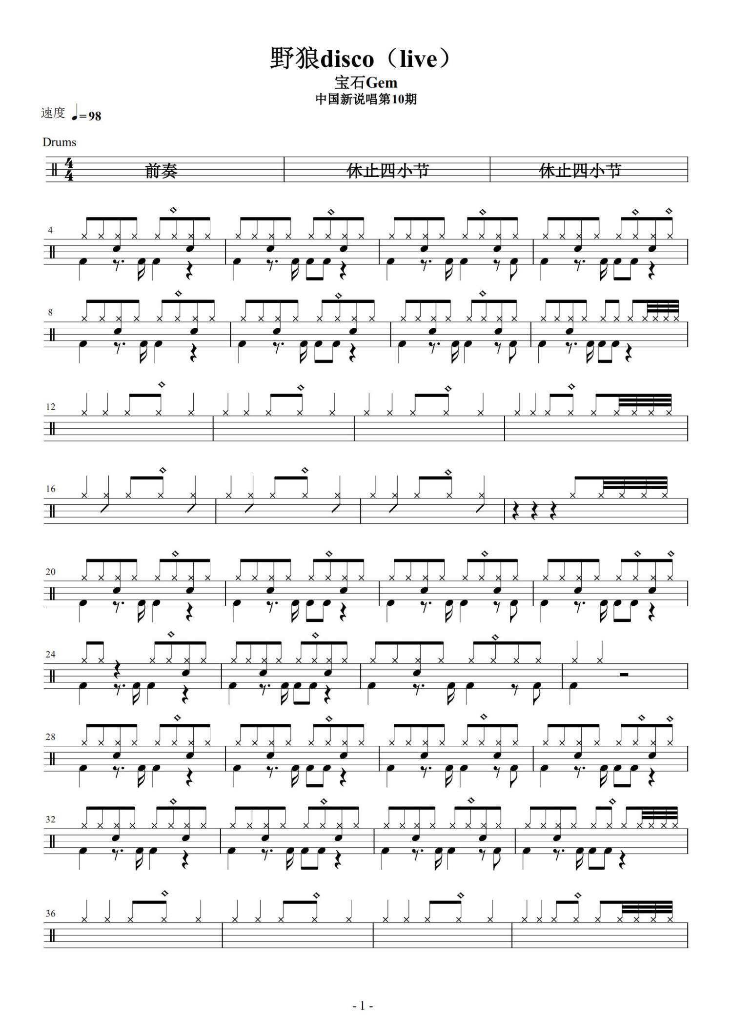 • 野狼disco鼓谱 - 宝石Gem - 架子鼓谱第1张