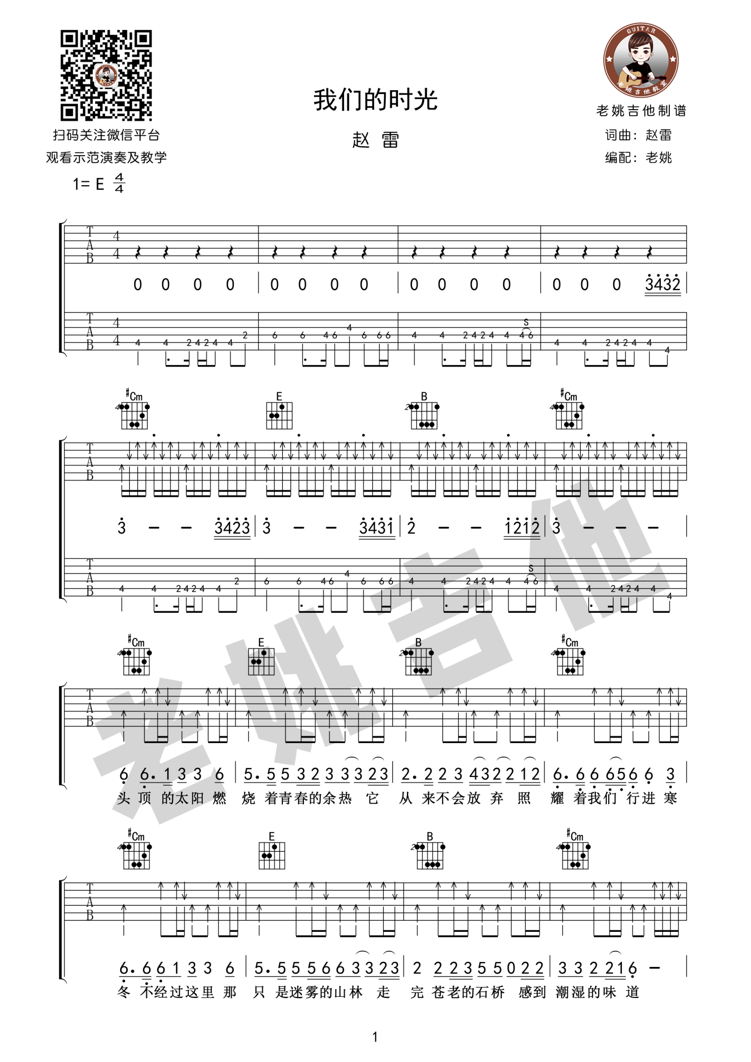 我们的时光吉他谱 - 赵雷 - 吉他弹唱谱