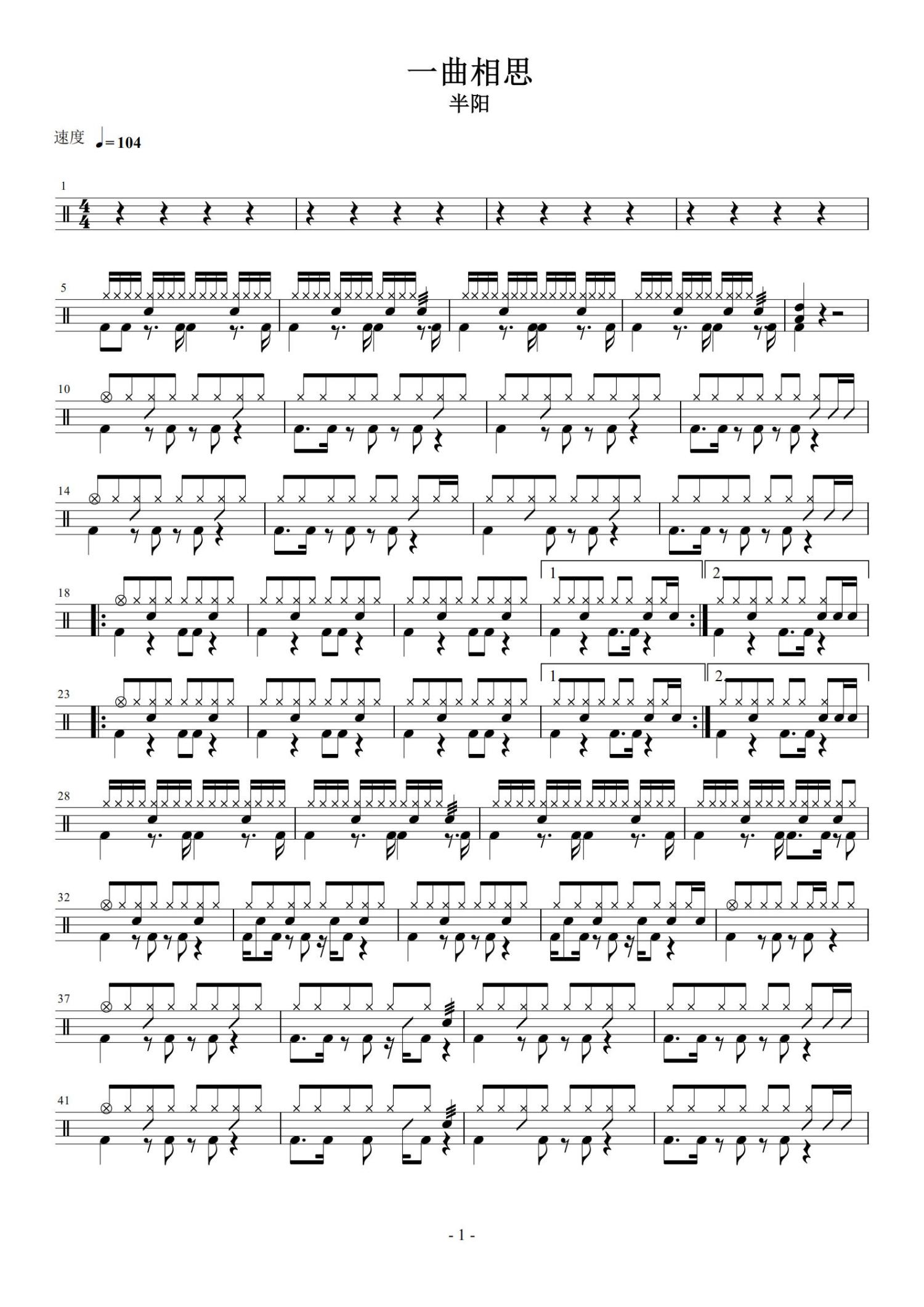 • 一曲相思鼓谱 - 半阳 - 架子鼓谱第1张